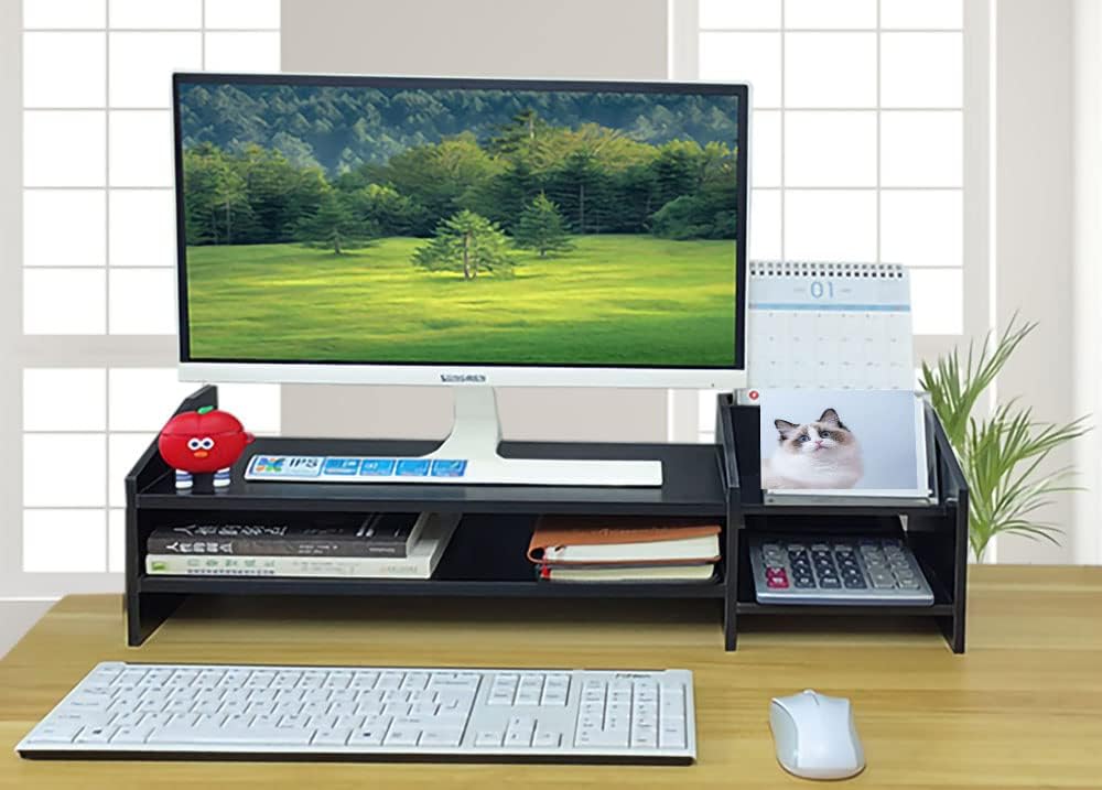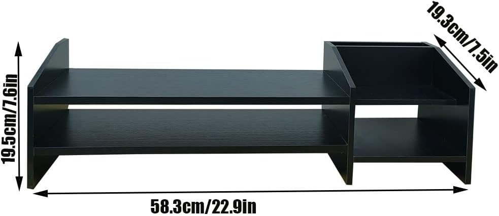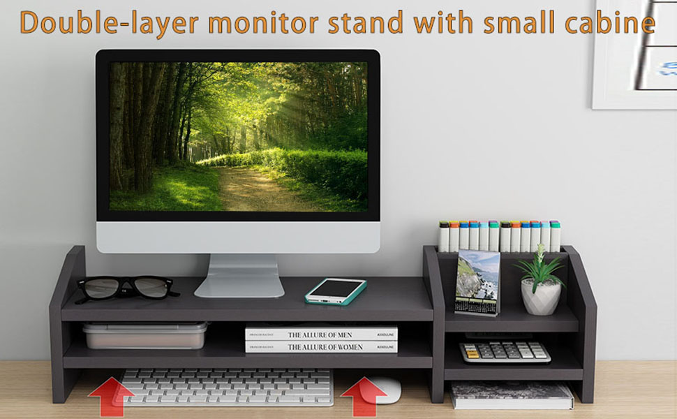 Monitor Riser, 2-Tier Wooden Monitor Riser Bracket, Multifunctional Desktop Organizer 22.9X7.5X7.6 in, Multidimensional Space, Monitor Stand Riser With Its Own Small Locker, Heightened Storage 2-in-1.