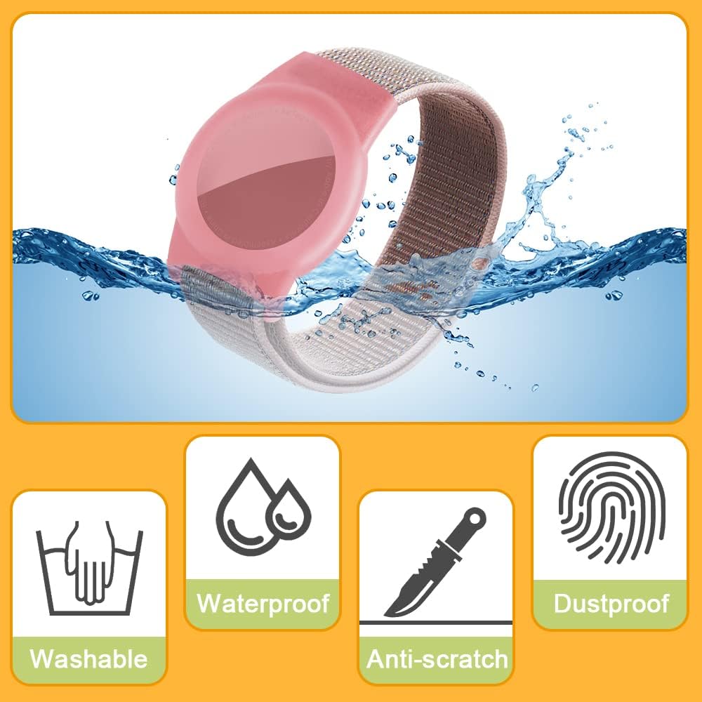 ☑【DURABLE & PRACTICAL】Made of high-elastic nylon, this protective bracelet is a skin-friendly and breathable material, which can easily attach to kids. And the protective case is made of TPU, which is hard and elastic, and perfectly wraps your tracker to prevent scratches. This wristband can effectively prevent your AirTag from falling and losing.