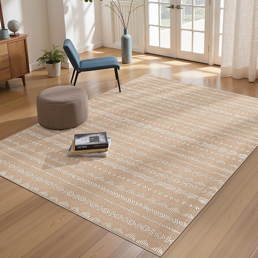 High-quality pile rug: This 6x9 washable rug is skillfully made from premium fiber which makes it ultra-soft and comfortable, better withstanding daily wear and tear. Designed at 0.2 inches, this soft neutral rug fits any season and will not obstruct the doorway. Expertly machine-woven and reinforced lock edges ensure non-shedding.