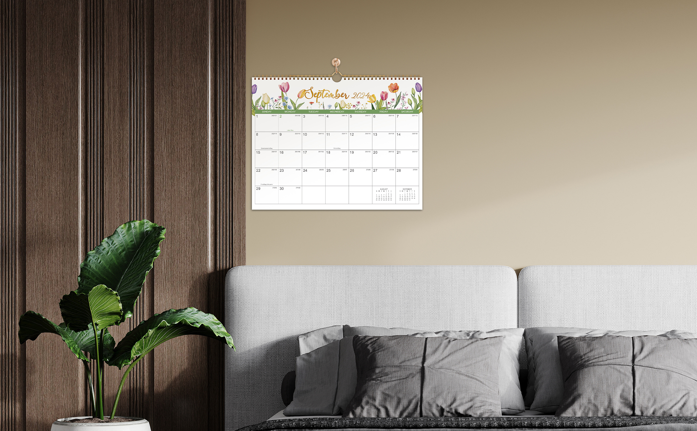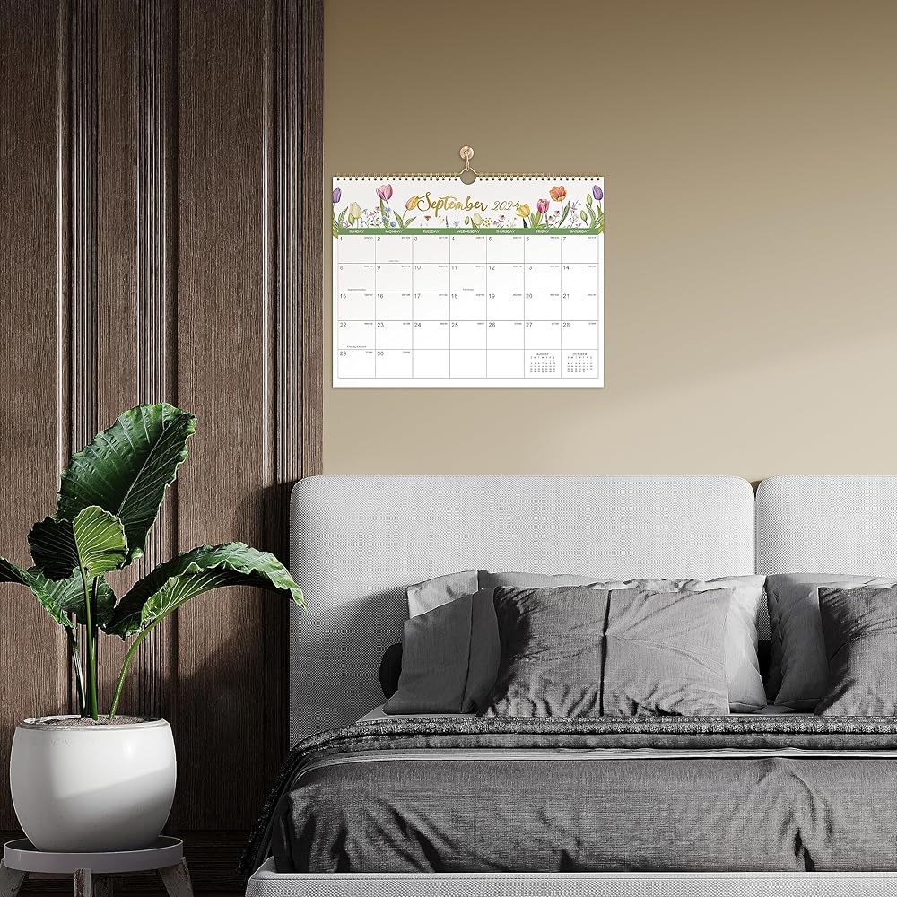 🌷 STURDY TWIN-WIRE BINDING - The strong twin-wire binding and the hanging loop helps the wall calendar 2024 hangs on the wall easily and sturdily.