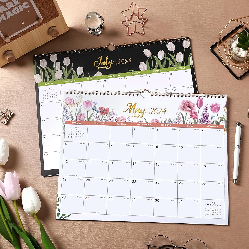 🌷 TIME MANAGEMENT - This 2024 calendar can be utilizied to jot down your notes, ideas, appointments, meetings, reminders and more. It's perfect to be an ALL-IN-1 calendar in office or at home.