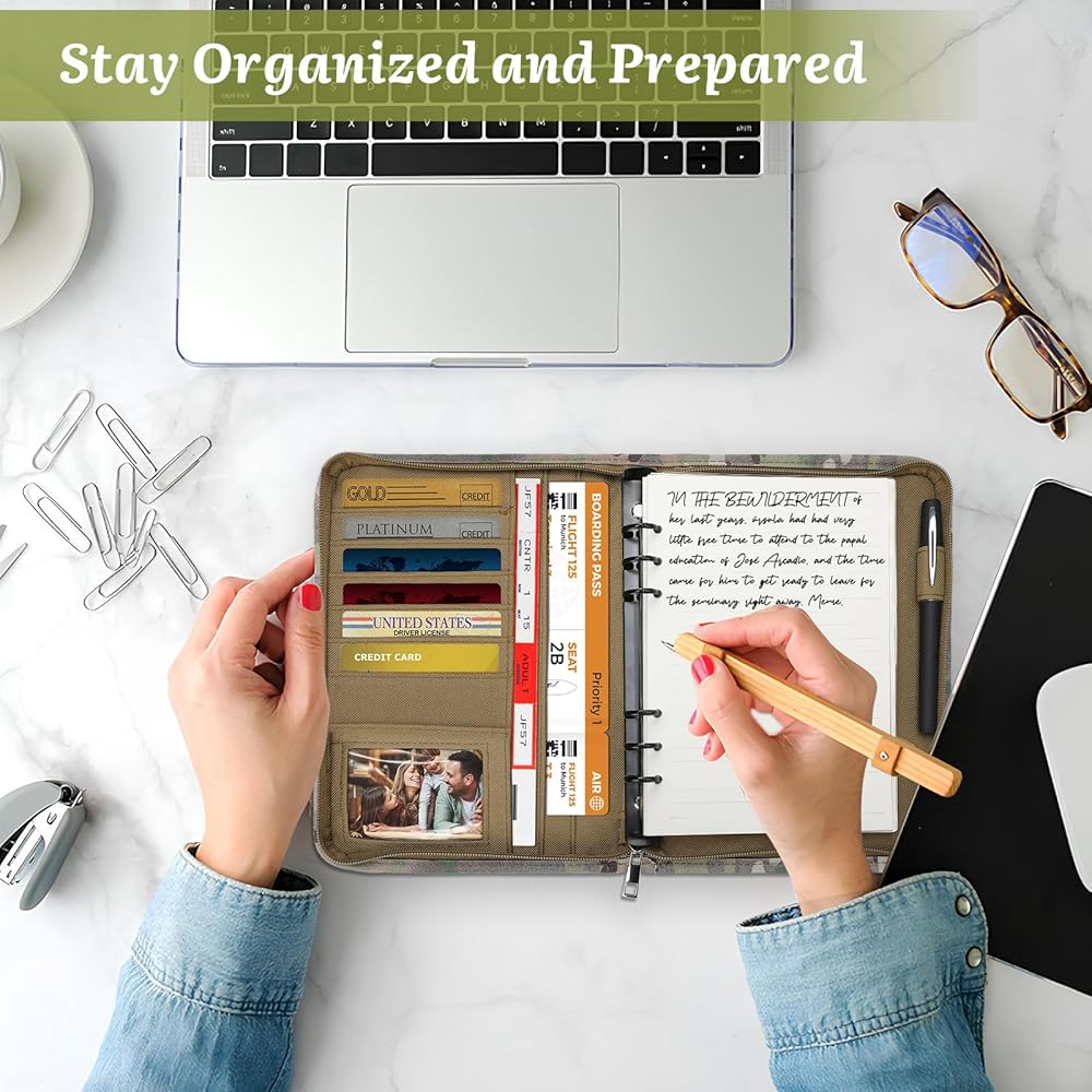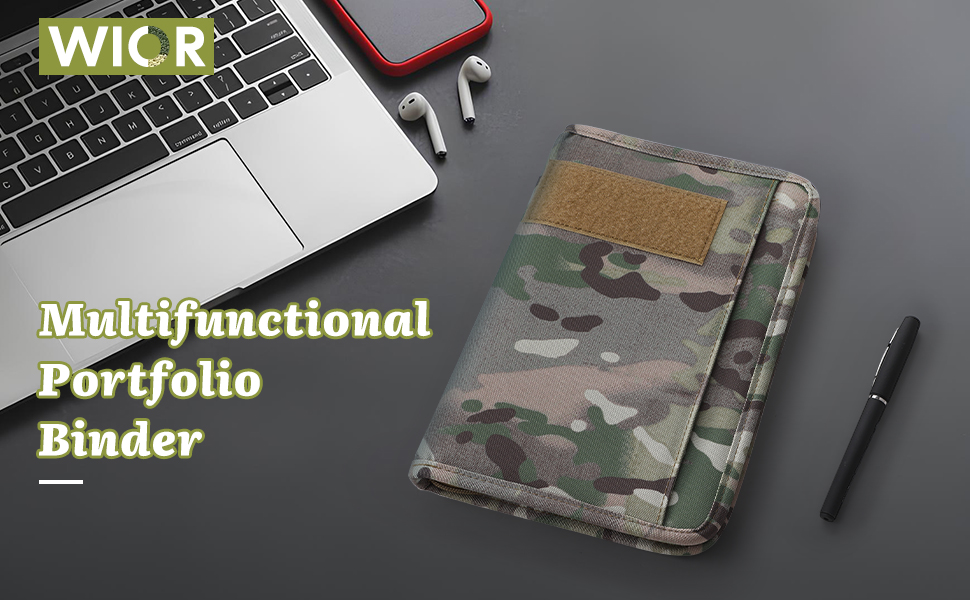 WIOR Tactical Padfolio Portfolio Binder with Zipper and 80 Sheets of Loose-Leaf Paper, Military Notebook Cover Portfolio Organizer Folder for Documents Business Cards, Detachable 6-Ring Notepad - Camo