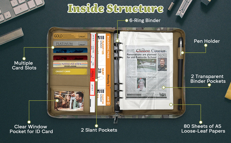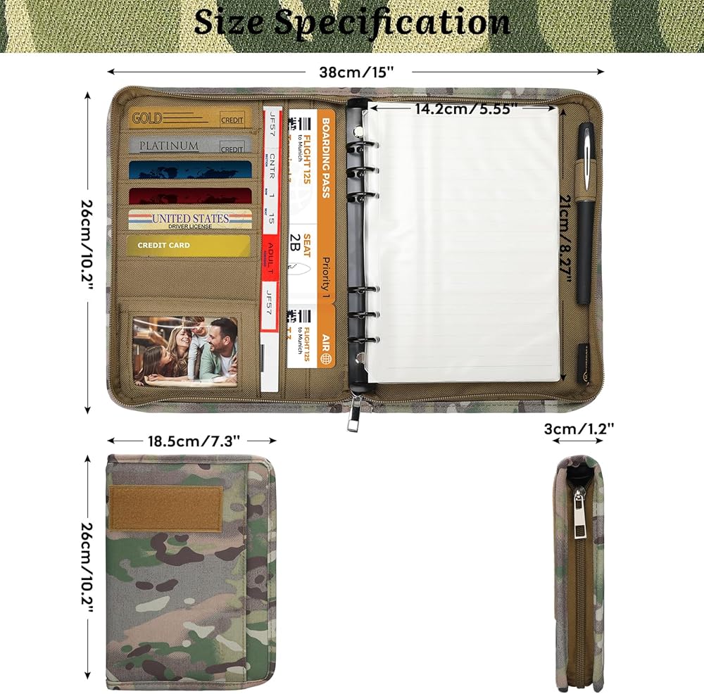 【Durable Construction】Crafted from high-grade oxford cloth, this tactical padfolio binder is built to withstand the rigors of daily use and remains in excellent condition over time. It offers exceptional durability and resistance to wear and tear, ensuring long-lasting performance. Whether you're constantly on the move or in a professional setting that demands durability, this padfolio organizer is up to the task.