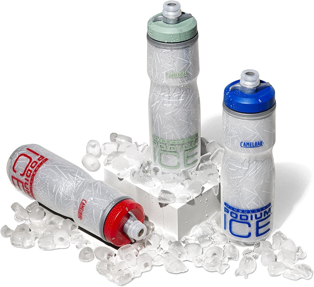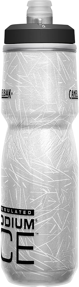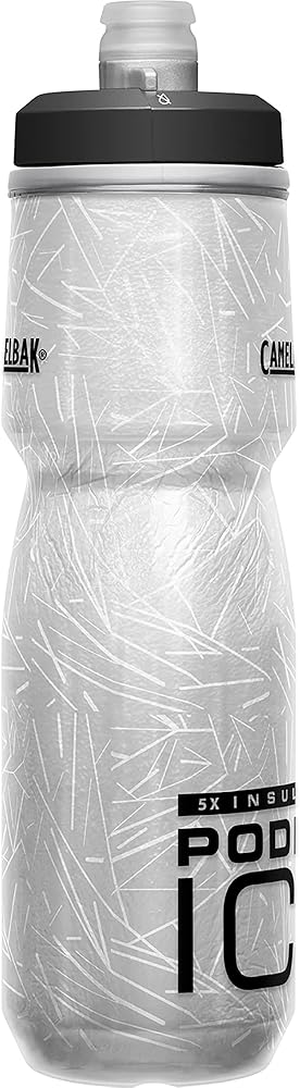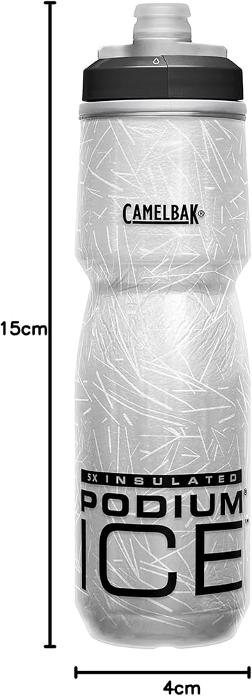 If drinking cold water is important to you, the CamelBak Podium Ice Insulated Water Bottle is right up your alley. The Podium Ice bottle is the perfect cold-storage water bottle for biking adventures. This water bottle has been engineered to keep your body properly hydrated while improving your on-road performance. It has been designed with Aerogel Insulation, which keeps water cold four times longer than other bicycle water bottles. Cycling enthusiasts have trusted CamelBak for years to provide them superior bottles for water that are optimized for peak performance. The Podium Ice sports water bottle continues to elevate CamelBak as the best of the best in the cycling world. This premium squeeze water bottle is a must-have item for your bike accessories kit. It has been redesigned to fit securely in a variety of bicycle bottle cages. The water bottles squeeze easily, allowing you to take in more water with less effort. They also include a high flow, self-sealing cap, which maximizes flow rate while reducing spills and splashes. The Podium Ice bottle is 100% free of BPA, BPS, and BPF. This insulated water bottle also features Trutaste Polypropylene with HydroGuard materials so that you taste your water and nothing else, time after time. All parts are easy to separate, which makes cleaning a breeze. Our Got Your Bak Lifetime Guarantee covers all reservoirs, backpacks, bottles, and accessories from manufacturing defects in materials and workmanship for the lifetime of the product. The CamelBak Podium Bike Ice Insulated Squeeze Water Bottle measures 2.9 x 2.9 x 10.4 inches and weighs only 5.4 ounces.