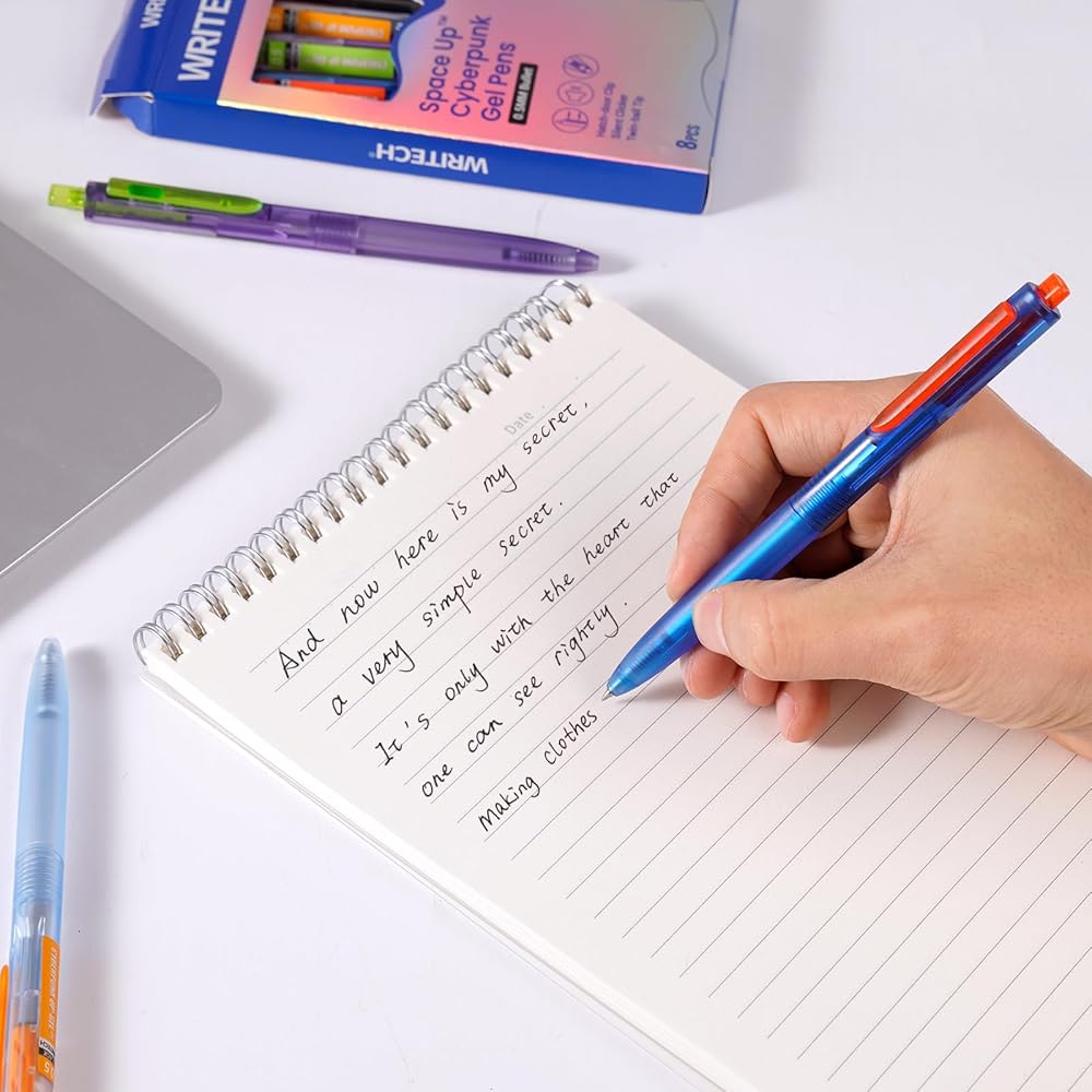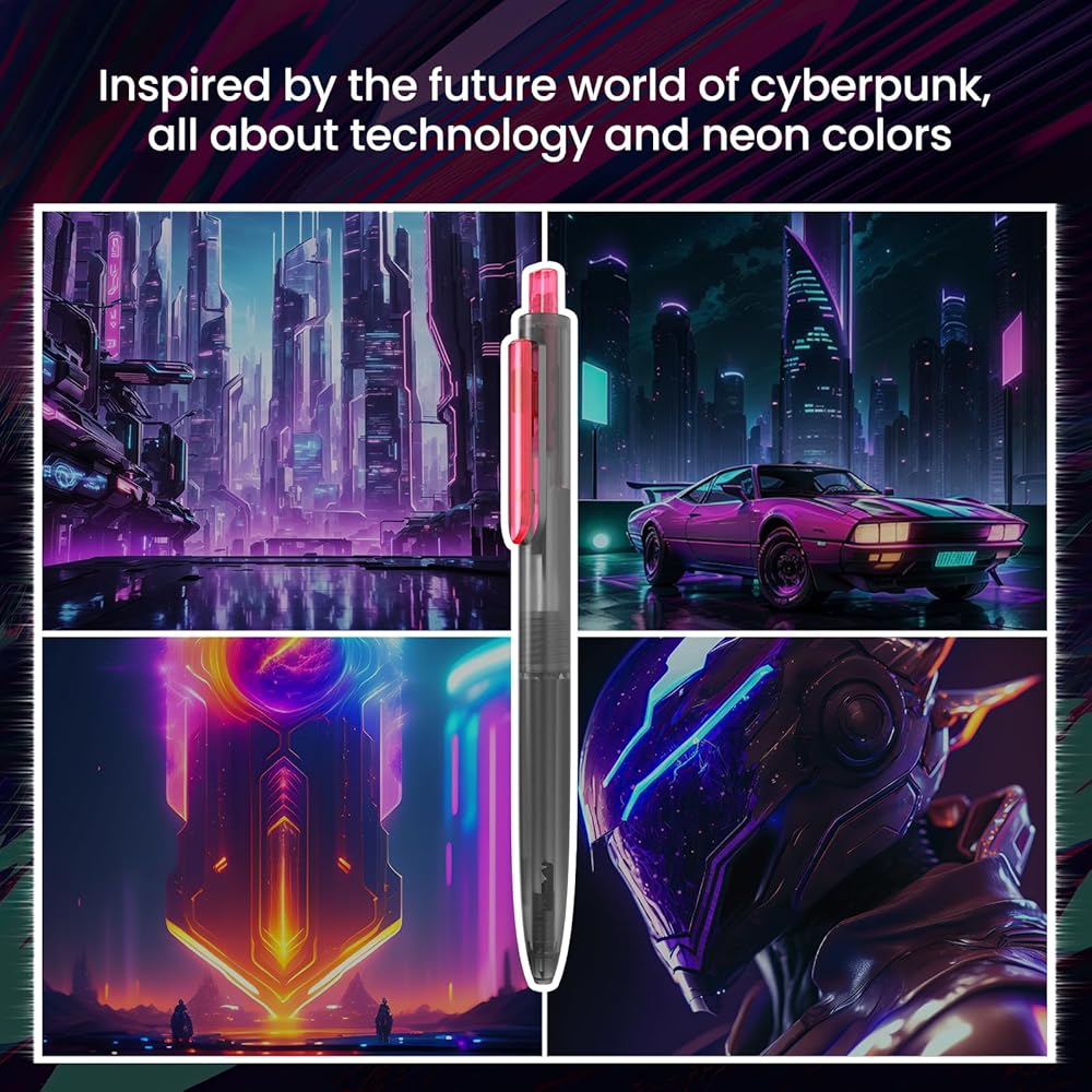 Arritech Gel Pens النقطة الجميلة: 0.5 مم قابلة للسحب قلم الحبر الأسود 8CT سريعًا لا تشوه على سلاح الكتابة صامتة انقر صامتًا لإلغاء مجلة Cyberpunk Up-Gel