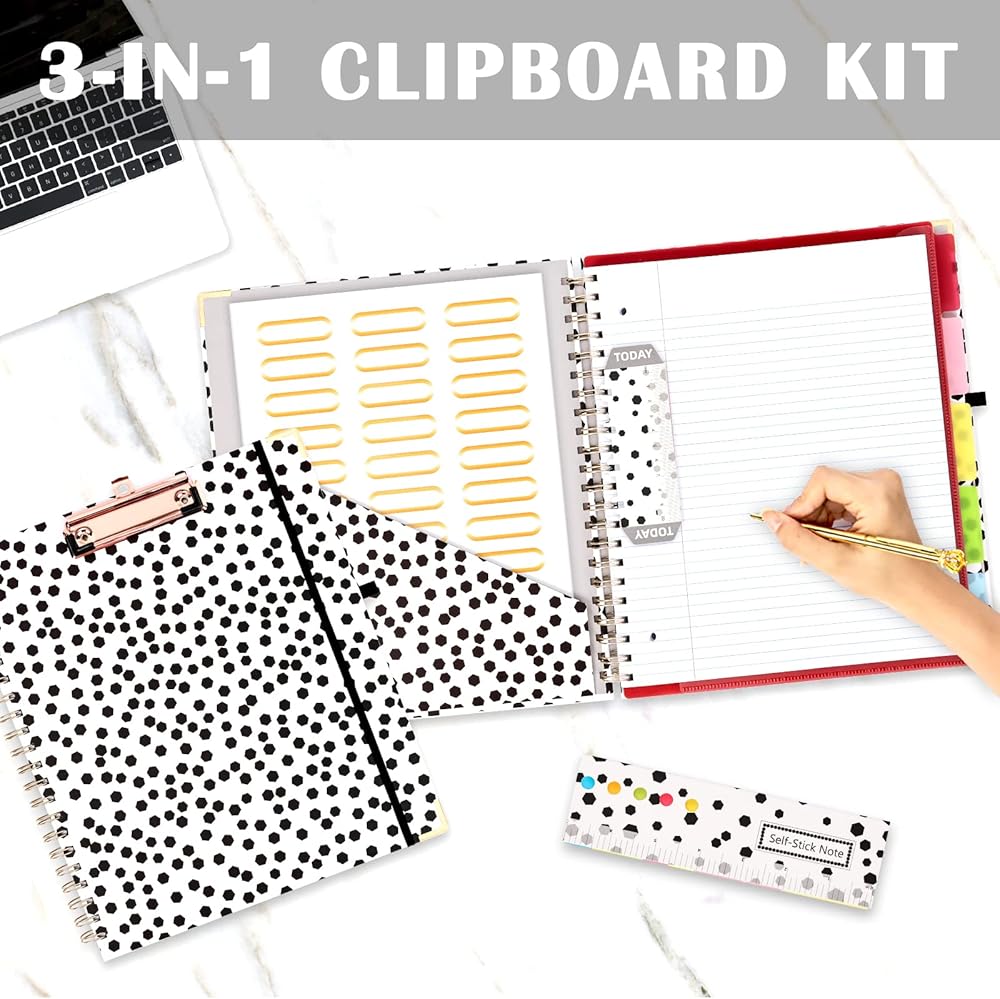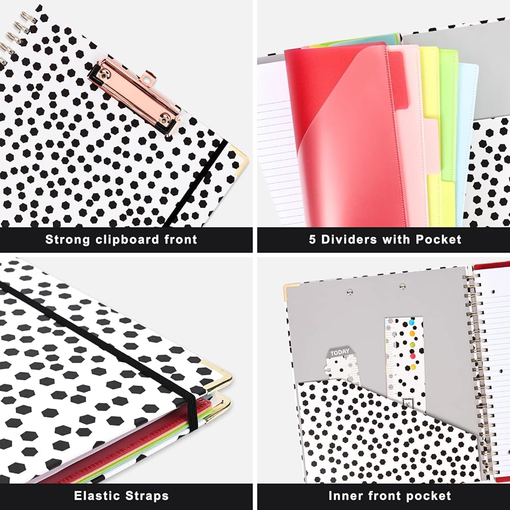 🌟( 5 Subject Notebook ) 5 Subjects + Clipboard: Stay organized effortlessly! Clear subject division with handy pockets for loose papers. Add matching tabs for maximum efficiency. The rose gold clipboard design adds a dazzling touch to your notebook, capturing hearts with its perfect appearance and smooth metal texture. Get productive in style!