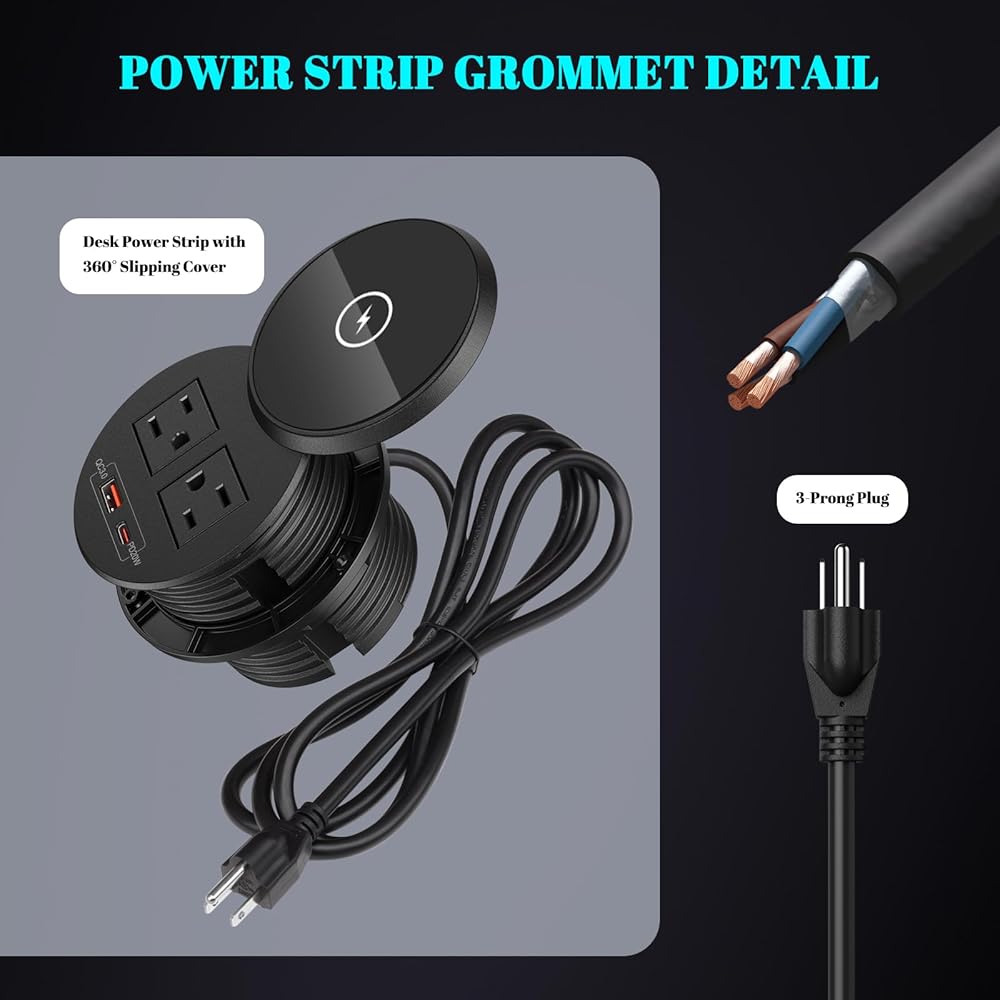 【Power strip with 6FT Extension】This round power Grommet with 6FT extension cord is very small and has current carrying capacity which can easily hide in a sofa, bed, nightstand, or other furniture. The cover on the power desk grommet back allows this power strip to be securely installed in various applications.6FT extension cord is also supported to use in a wide range.
