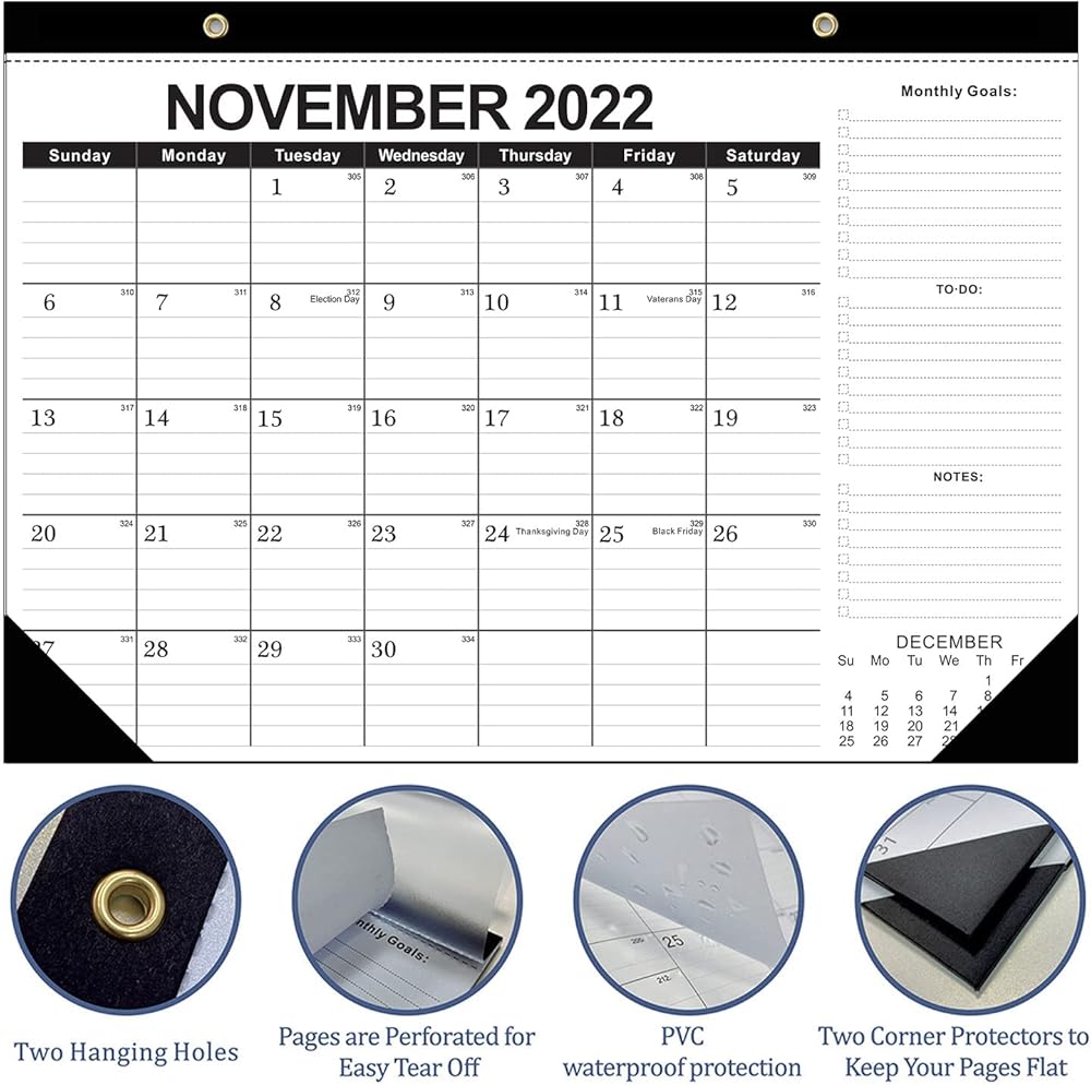 There are two round holes at the top of the desk calendar, which can be hung on the wall or used on a desk. Pagination lines allow you to tear off each page easily. It's perfect for school, home or office.