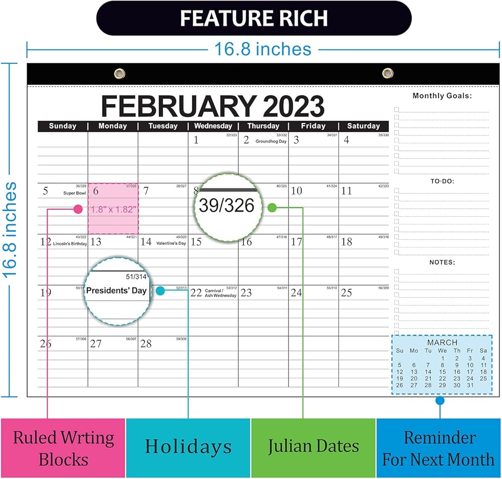 The desk calendar features large writeable line squares, an unrivaled 100 GSM thick paper that won't bleed, and a durable backplate that gives you a solid writing surface to write boldly and confidently.