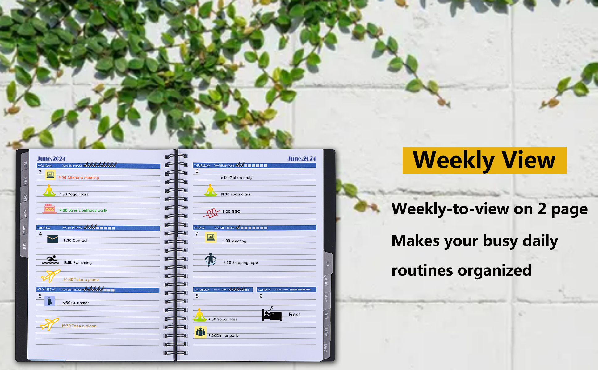 2 PAGES PER WEEK:Lay flat week-to-view on 2 pages, this weekly planner (Jan 2024 - Dec 2024) presents spacious everyday planning, which makes your busy daily routines organized.