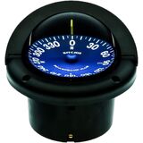 Supersport compass, MFG# SS-1002, flush mount, black housing, 3.75" top reading blue dial with large numbers, moveable sun shield, green illumination, compensators, 5.2" diameter, 4" hole, 5 year warranty.