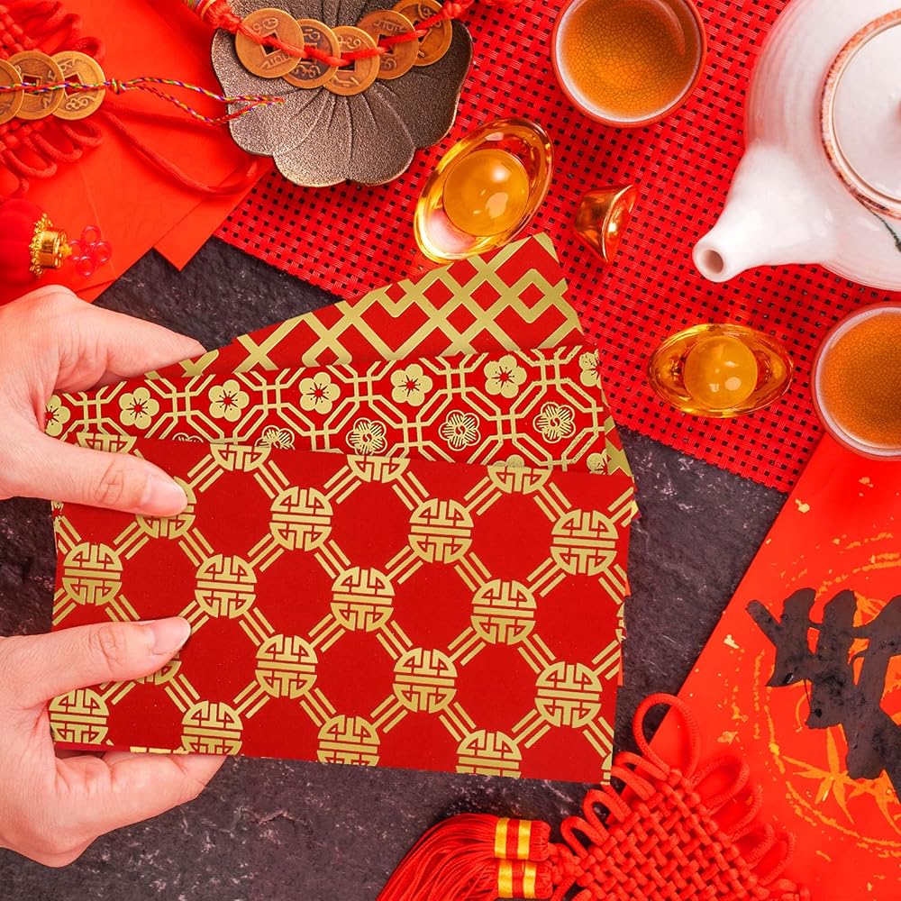 These pocket envelopes mean to bring good luck and happiness to the people who receive them. You can send them to family and friends in the new year, wedding, birthday, party and many other occasions.