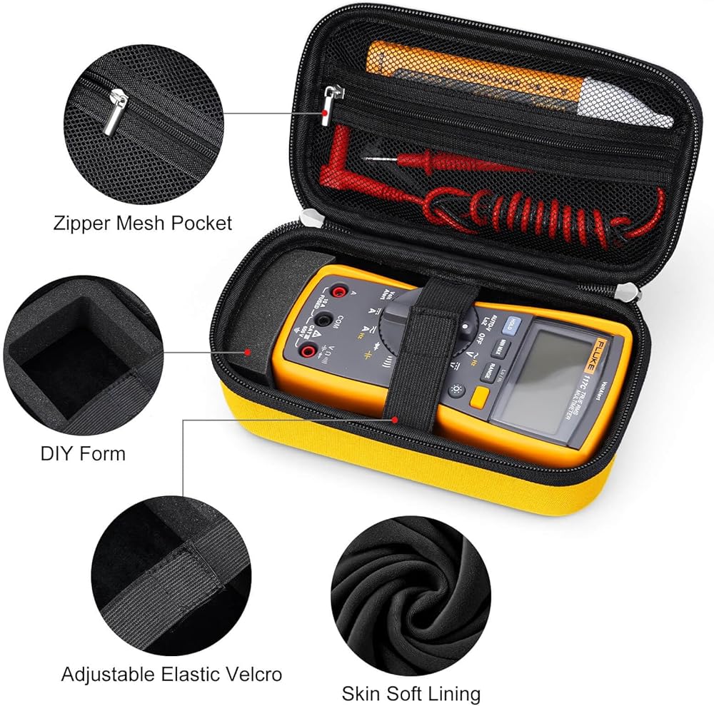 Hard Case Compatible with Fluke 117/116/101 & Klein Tools MM400 Multimeter, Carrying Case Protecting Meter, Yellow