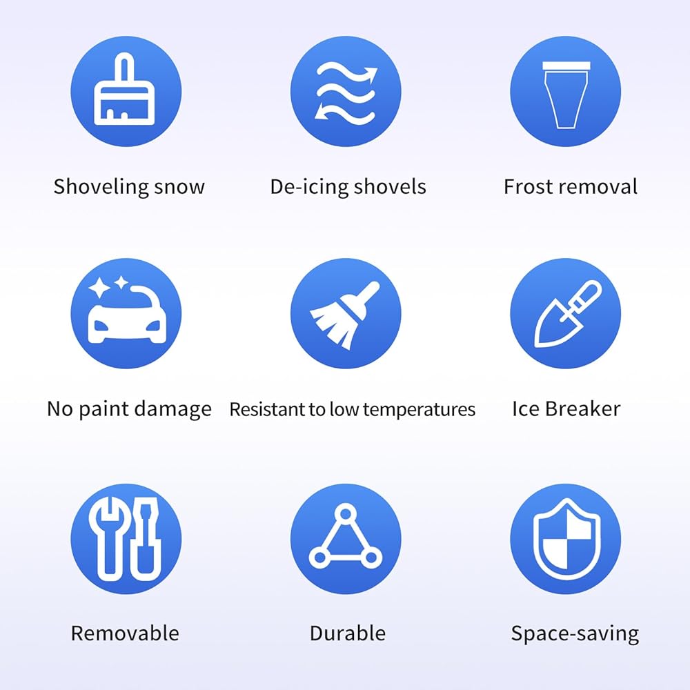 [CONVENIENT STORAGE]: Our Car Windshield Ice Scraper. After disassembling, the longest handle part is only 10.2 inches. It can be placed in the trunk and door handle storage compartment. It is a very good window cleaning tool. In addition to removing ice and snow on the windows, it can also be used to clean the glass of your home. Suitable for trucks, cars, SUVs, and other models. It can also be used to clean up the car above the clutter and garbage.