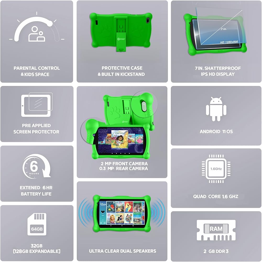 Easy Parental Control & Full Access to Google: Kids Place allows you to control screen time and kid friendly contents. Filter feature can ensure your kids see filtered websites, apps, video channels etc. This app has no ads and no in-app purchases without your permission. Contixo V10 is also a fully functional Android Tablet. With GMS Certified, you have full access to the latest Google Service such as Gmail, YouTube, Disney + and many more apps and contents.