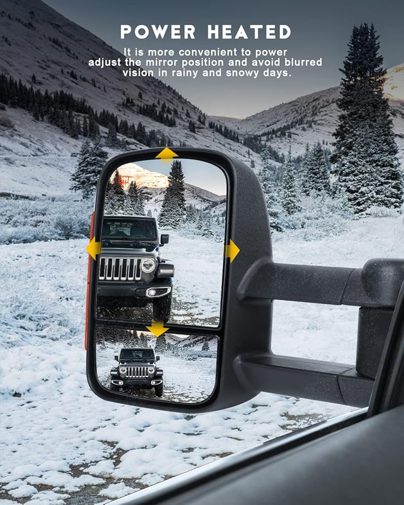 🚛 Why - towing mirrors provide better and wider angle of rear view, which can improves visibility and reduces blind spot, also it can dramatically improve styling and appearance. Professional installation is highly recommended.