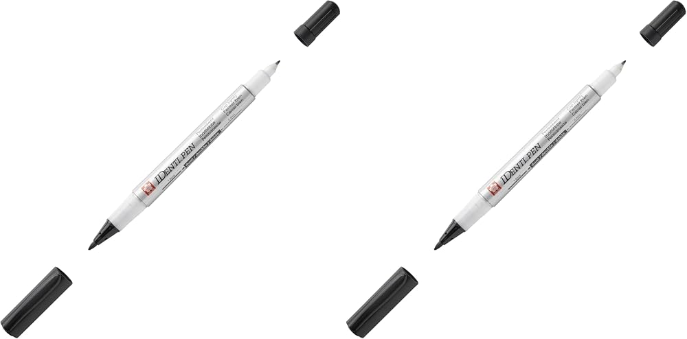 Identic-pen features a dual point and Leaves a permanent mark on most nonporous surfaces. One end is for details, with an extra fine plastic point that won't break down. The opposite end is for broader lines, with a tough fiber point built for heavy use. Waterproof pen writes on leather, metal, wood, glass, CDs, plastic, and photographs. The ink is low-odor and resistant to water. Alcohol-based cleaners will remove ink from nonporous surfaces. Identic-pen meets nontoxicity requirements.