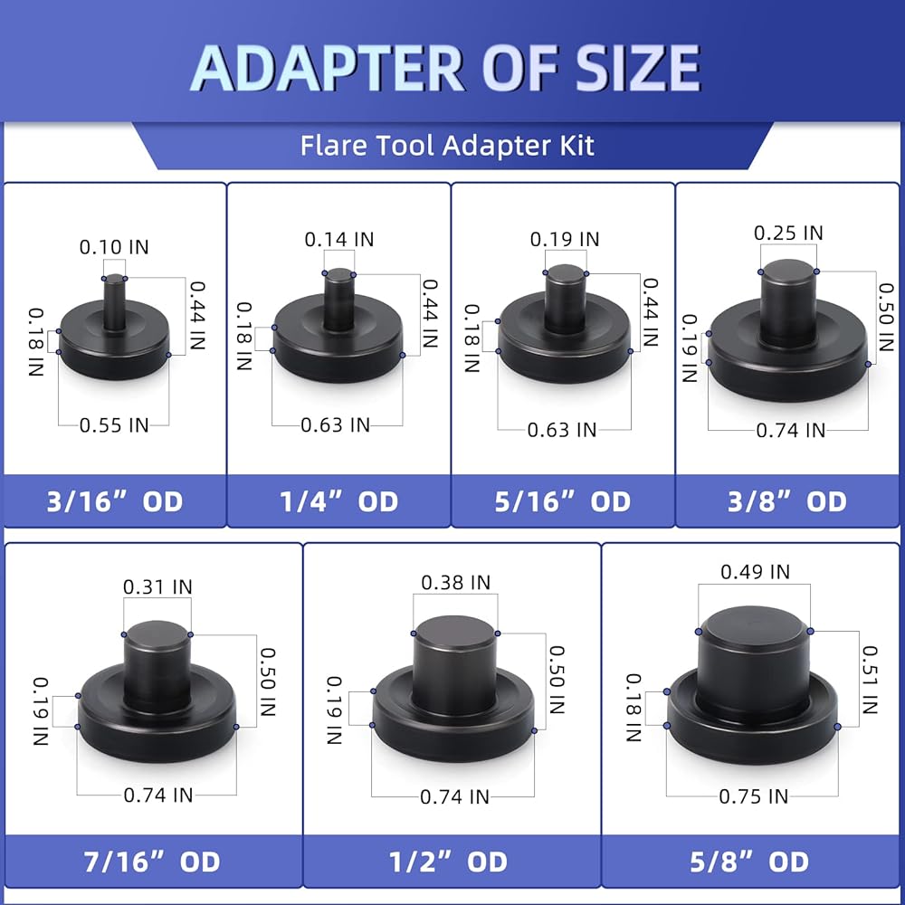 14 Pcs Steel Adapters for Double Flare Tool, Fit for 3/16" 1/4" 5/16" 3/8" 7/16" 1/2" 5/8" OD Tubing Expander