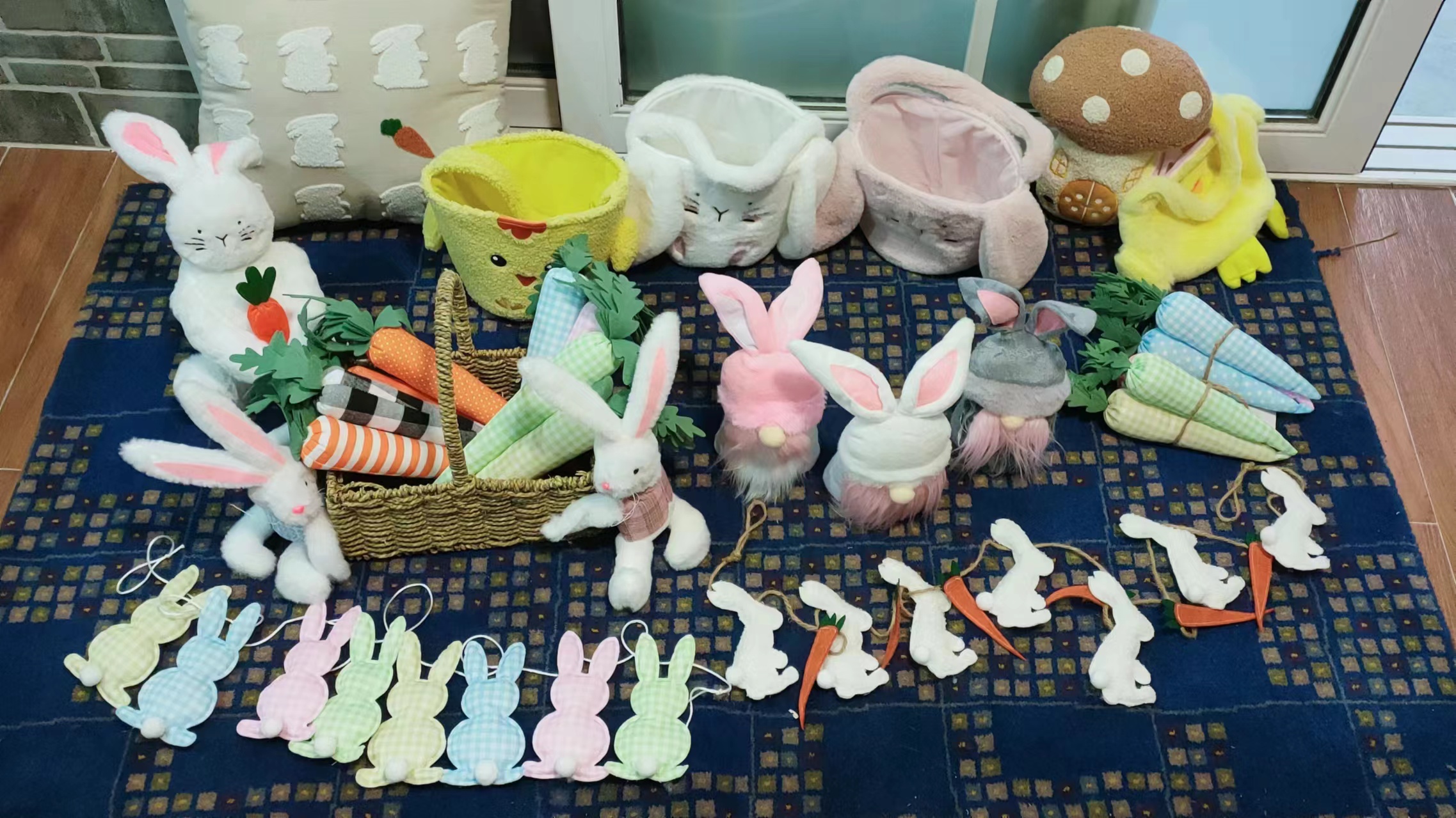There are stuffed solid bunny doll measure 14inch heigh with 6.5inch width.they Can be Easter decoration or curtain daily buckle hook also.