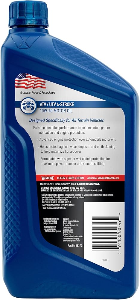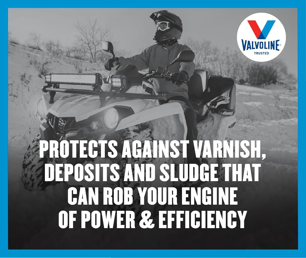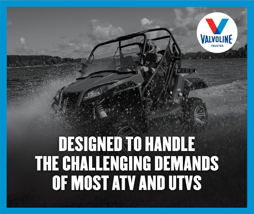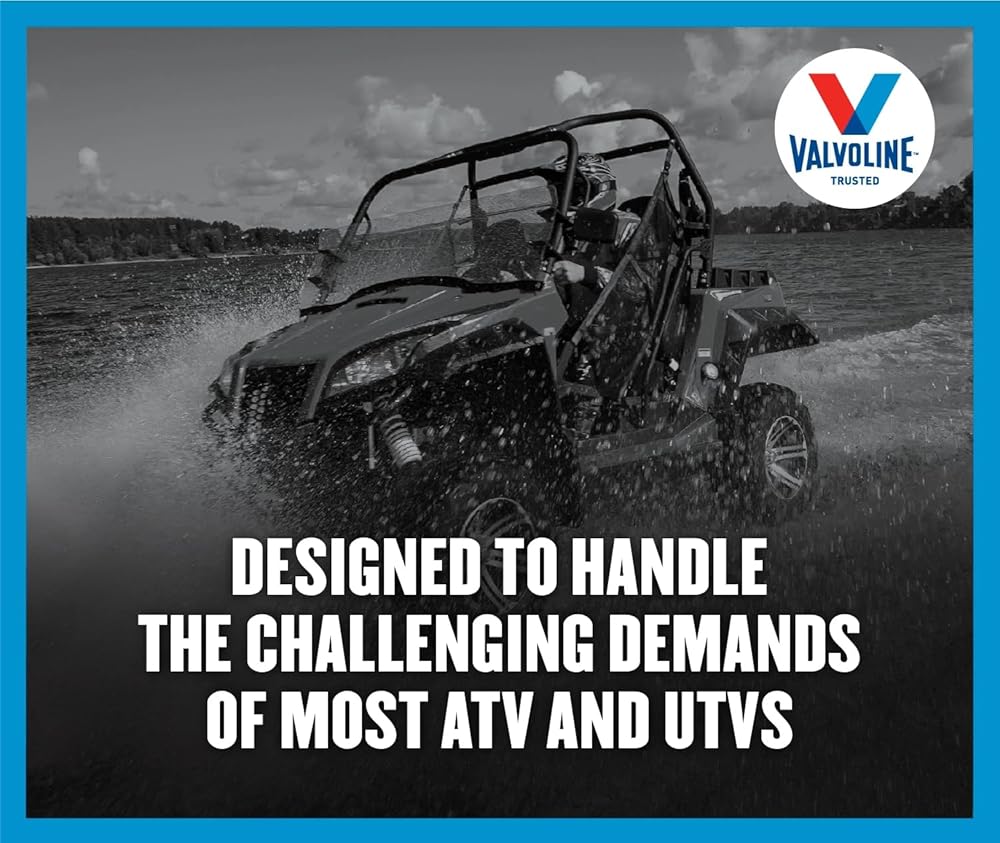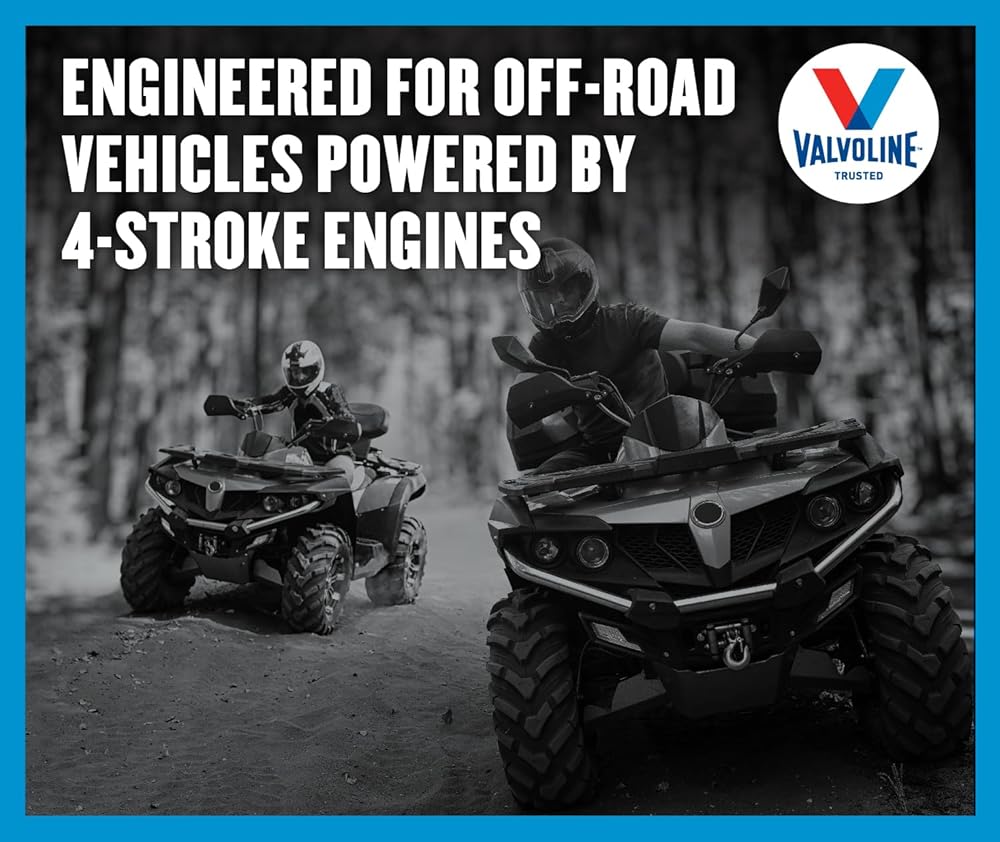 Valvoline 4-Stroke ATV Motor Oil contains a proprietary blend of premium base oils and advanced additive technology to help you get the most from your ATV. The wet clutch system, high torque & loads, and the extreme operating environments of ATVs require an oil with special properties for proper performance and protection. Valvoline formulated ATV oil to meet the specific demands of ATV applications, providing the proper frictional properties for the wet clutch system and the film strength for high running temperatures.