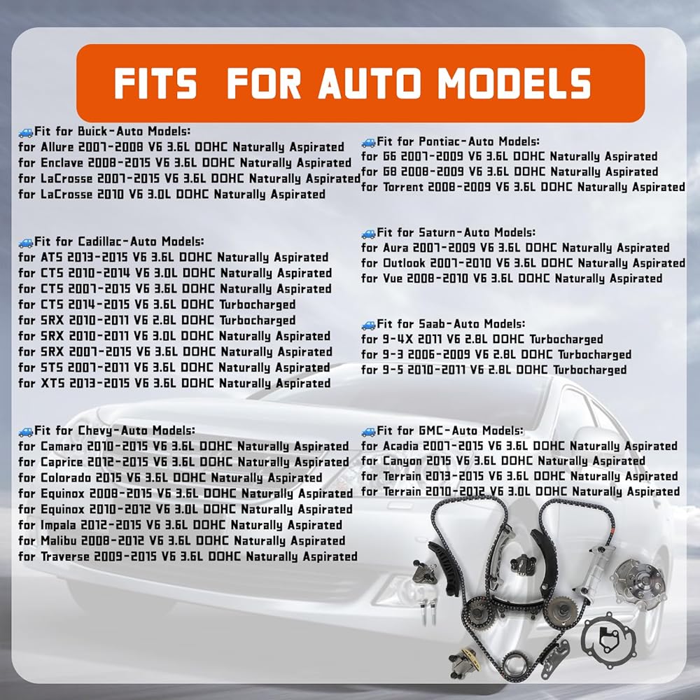 9-0753S Timing Chain Kit - with Water Pump Fits for Buick-Lacrosse/Enclave, for Pontiac-G6/G8, for Cadillac-ATS/CTS, for Camaro/Colorado, for Saab 9-3 9-5,for Saturn Vue 2.8L 3.0L 3.6L,1-Year Warranty