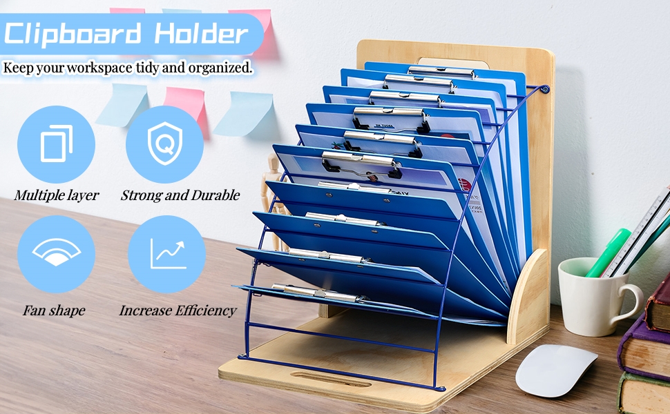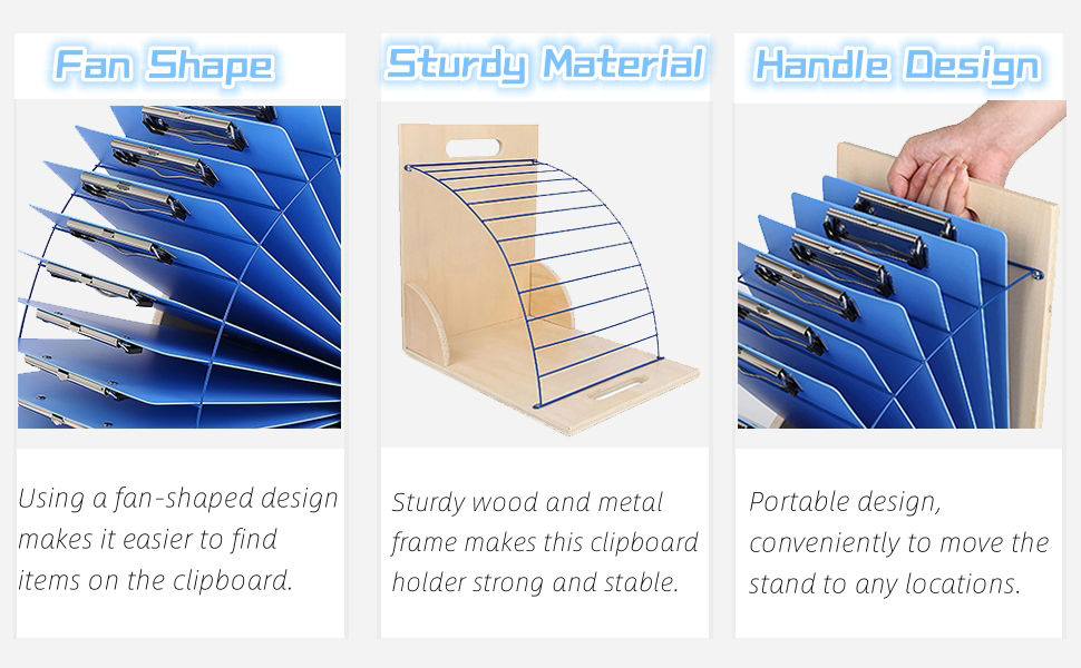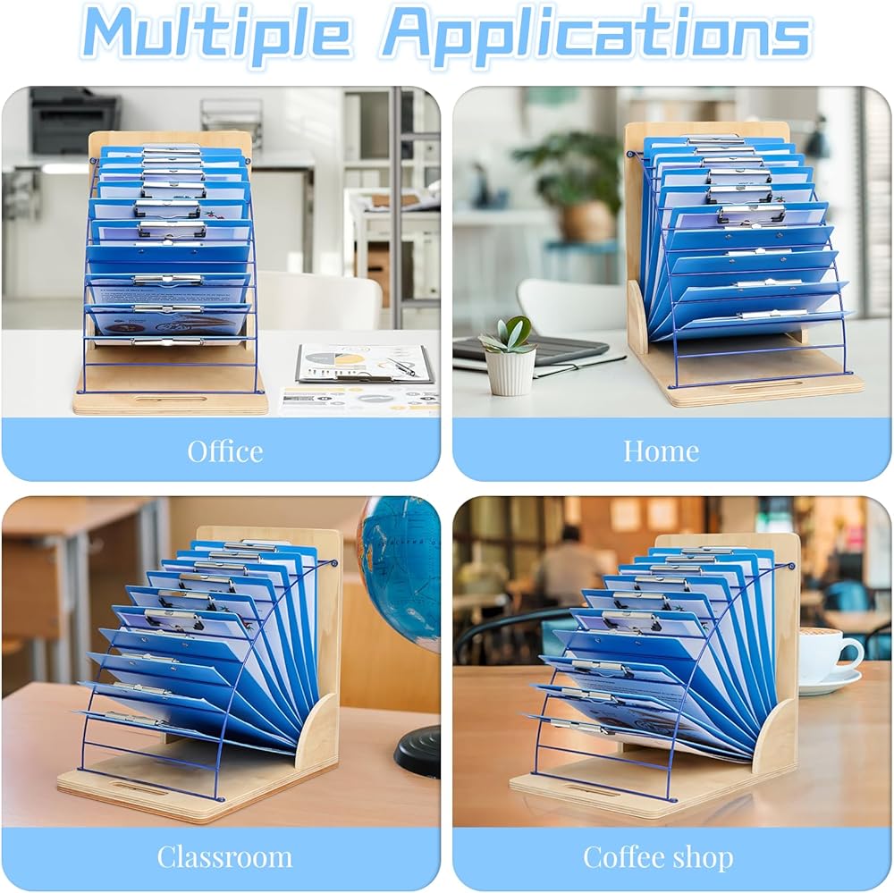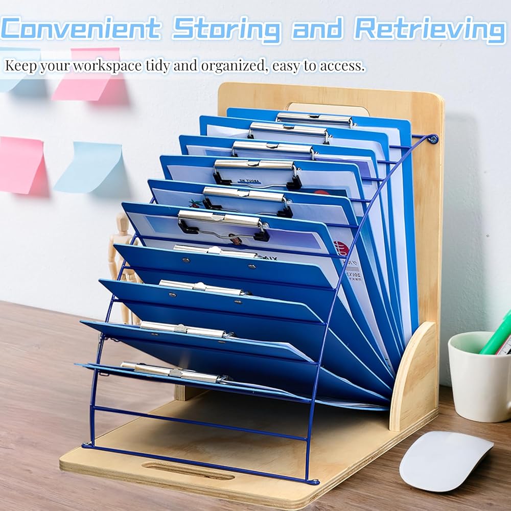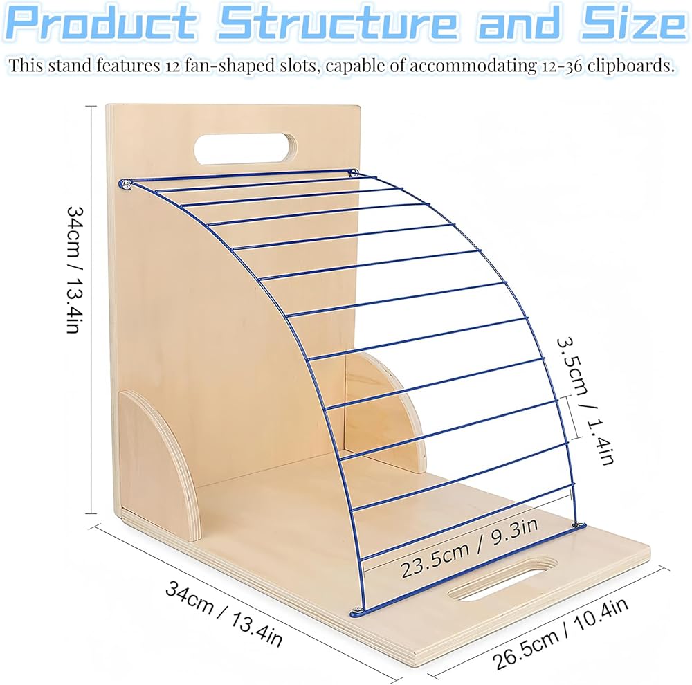 [Large Storage Capacity] This clipboard stand features 12 fan-shaped slots, capable of accommodating at least 12 clipboards. Its design aims to meet your diverse needs, enabling you to efficiently organize and manage various files and papers. Please note that the width of the clipboards should not exceed 9.25 inches.
