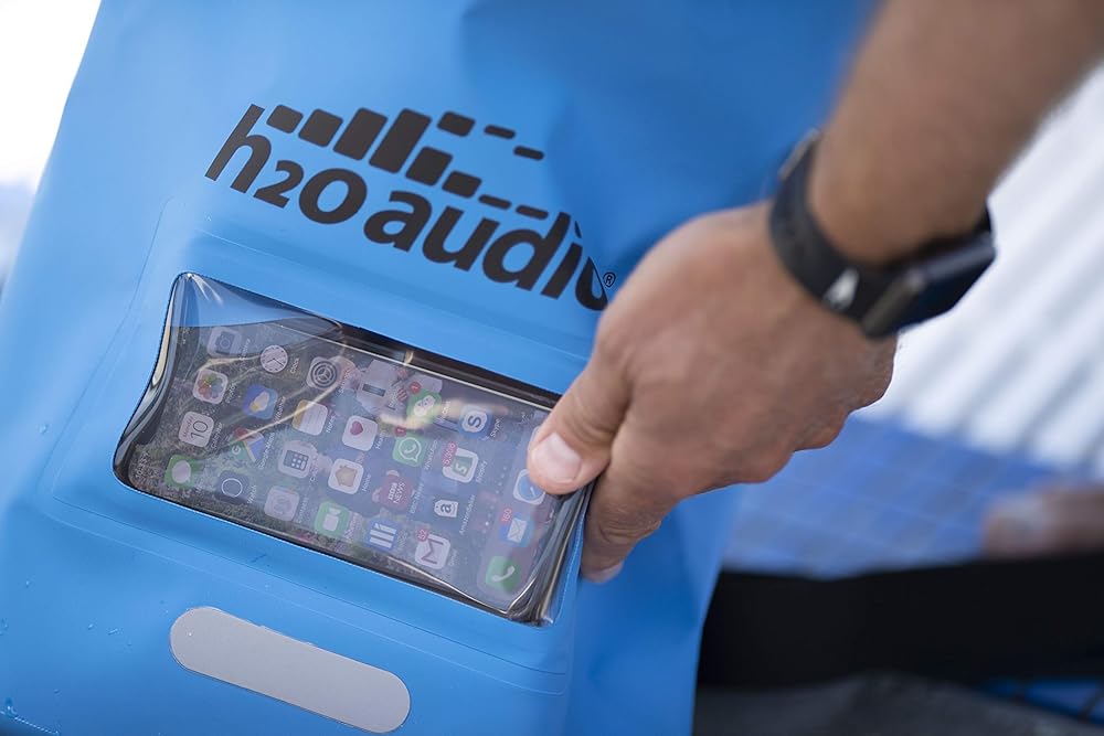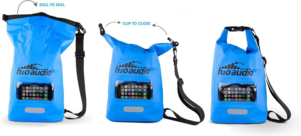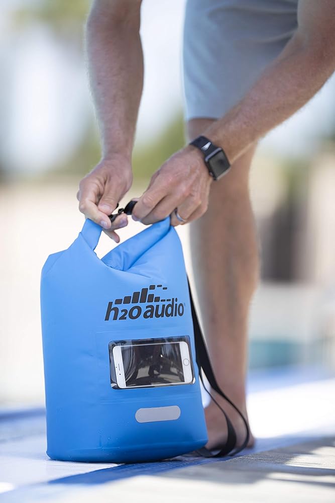 H2O Audio Floating Dry Bag, 100% Waterproof, Roll Top Closure with a Sealed Smart Phone Window Case,10L Sack for Swimming, Kayaking, Boating, Fishing, Camping and Hiking