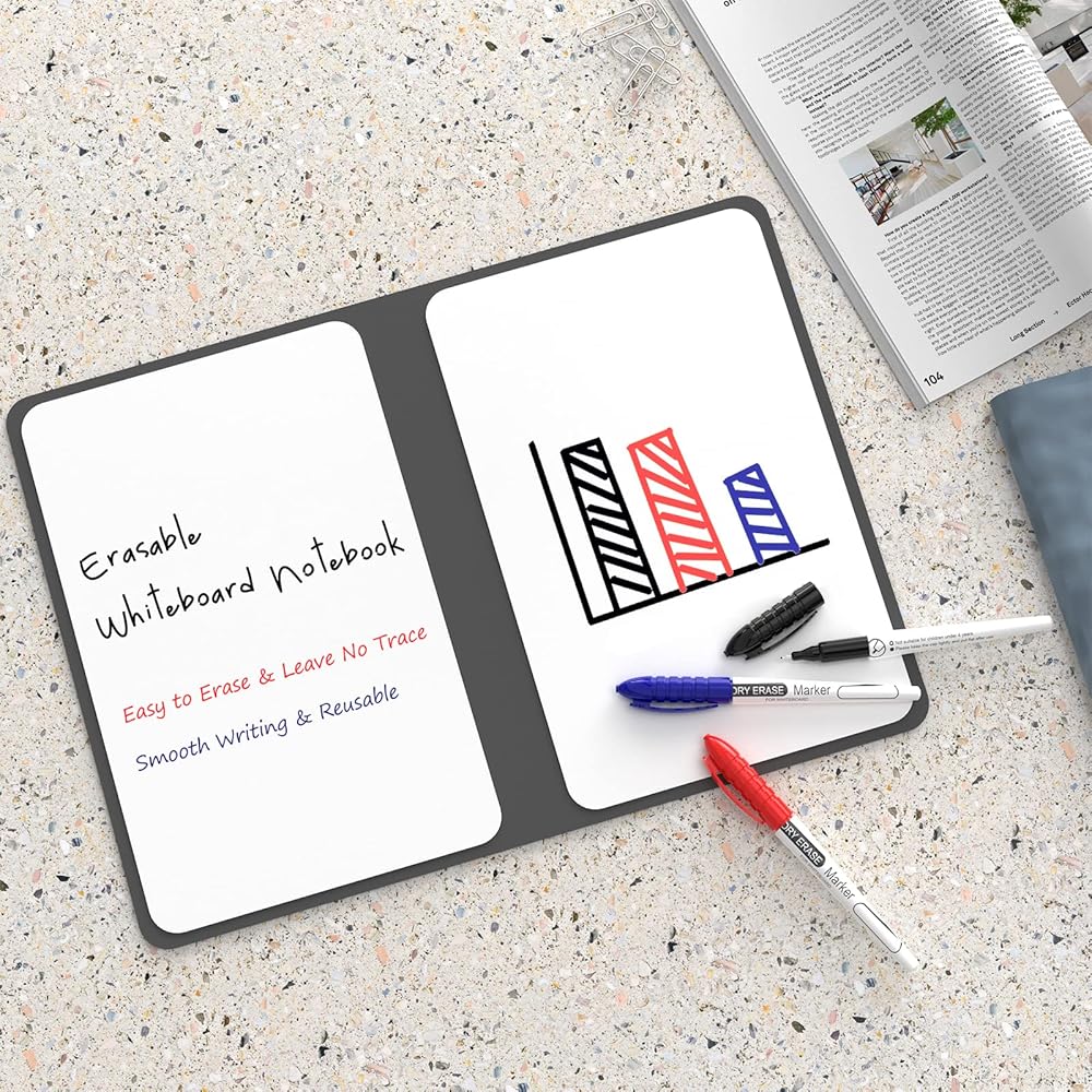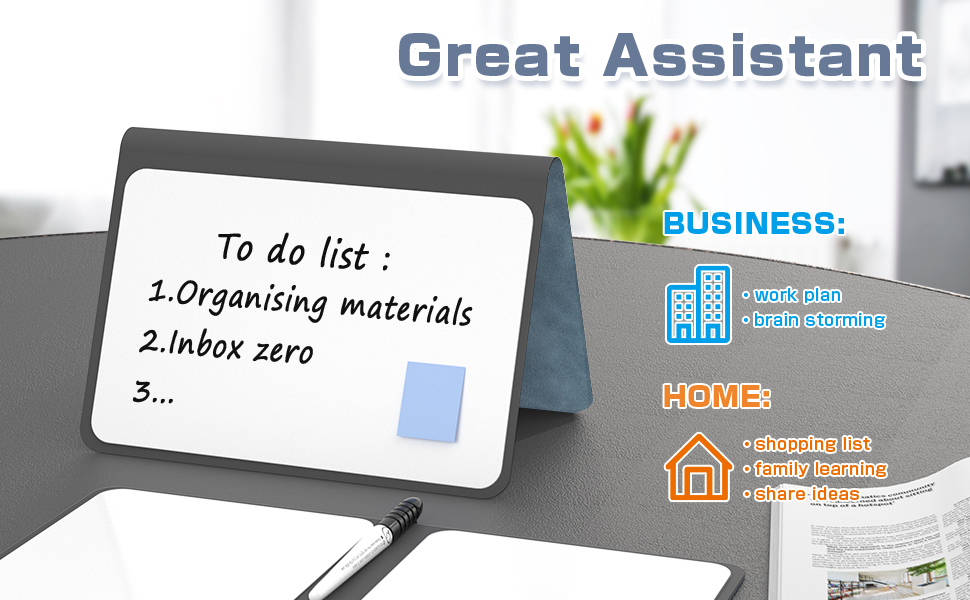 【Package Include】 Come with a whiteboard notebook and 3 color marker pens. Great assistant for home, business, meeting and school.