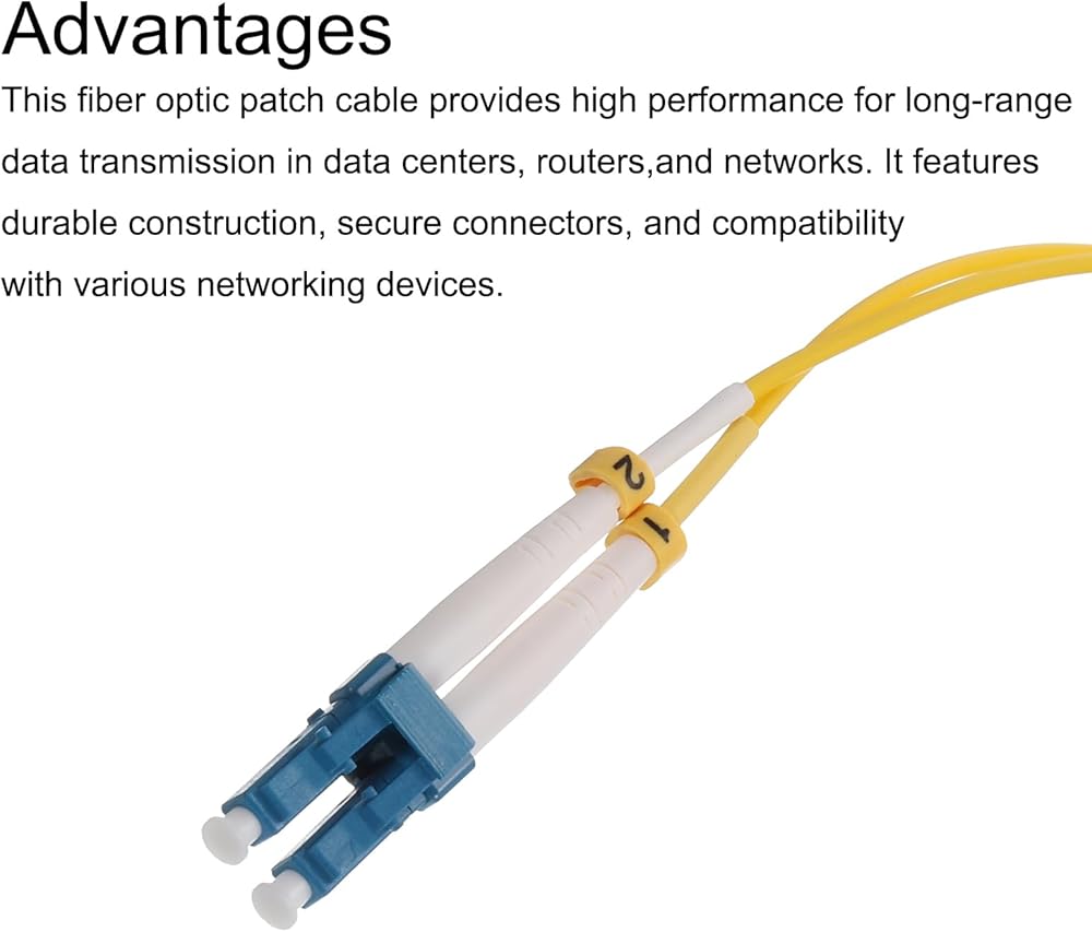 This fiber optic patch cable provides high performance for long-range data transmission in data centers, routers,and networks. It features durable construction, secure LC to LC connectors, and compatibility with various networking devices.