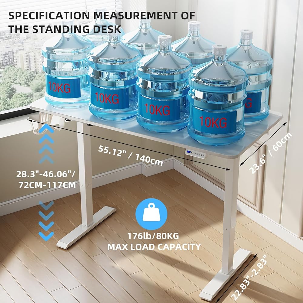 【Spacious Work Area】Large 55" x 24" eco-friendly home office desk provides plenty of space for various monitors and laptop setting, plus enough room for ongoing projects and office supplies, You will break free from the sedentary work state to achieve health and efficiency.