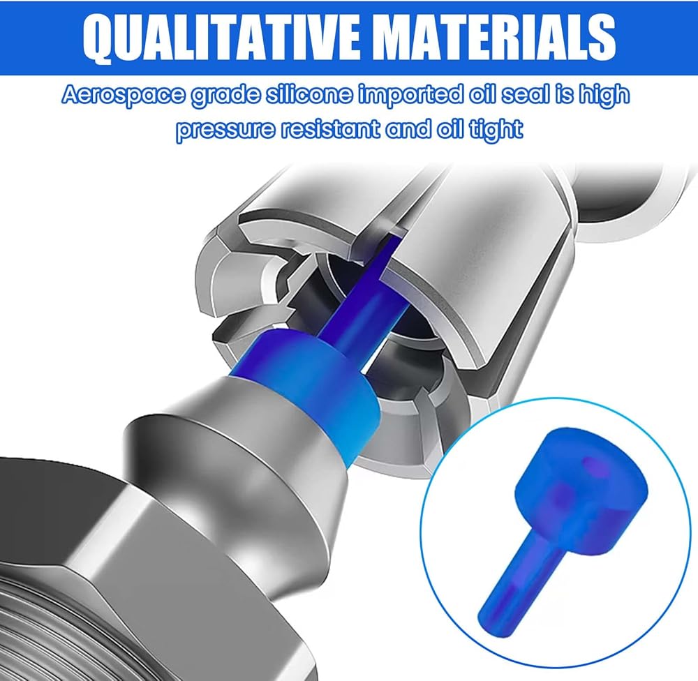 【Sturdy and Stable】This high-quality grease gun coupler is made of premium quality zinc-coated alloy steel and the built-in spring for greater durability,with thicker springs providing stronger locking force. quick connect grease gun coupler more stable and stronger than any other grease couplers on the market.