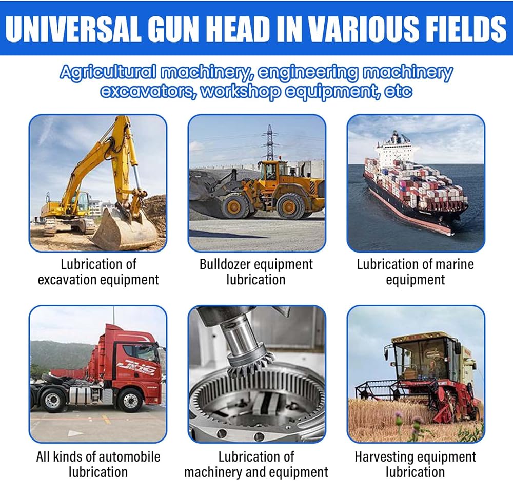 ▶Grease gun coupler used on construction sites or in auto repair shops, small campers, large trucks, and large machinery. grease gun coupler kit is also excellent for lubricating tractors, disc harrows, seeders, etc. on farms.