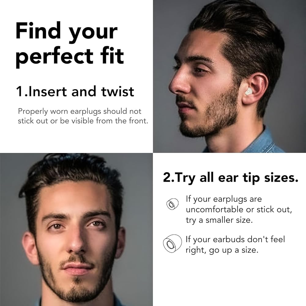 Easy to wear - These earplugs are easy to wear and fit comfortably. We equip you with four sizes of earplugs (XS-L), if the earplugs don't reduce the sound sufficiently or fall off, it's better to try to wear a bigger size, choosing the right size can give you better sound isolation.