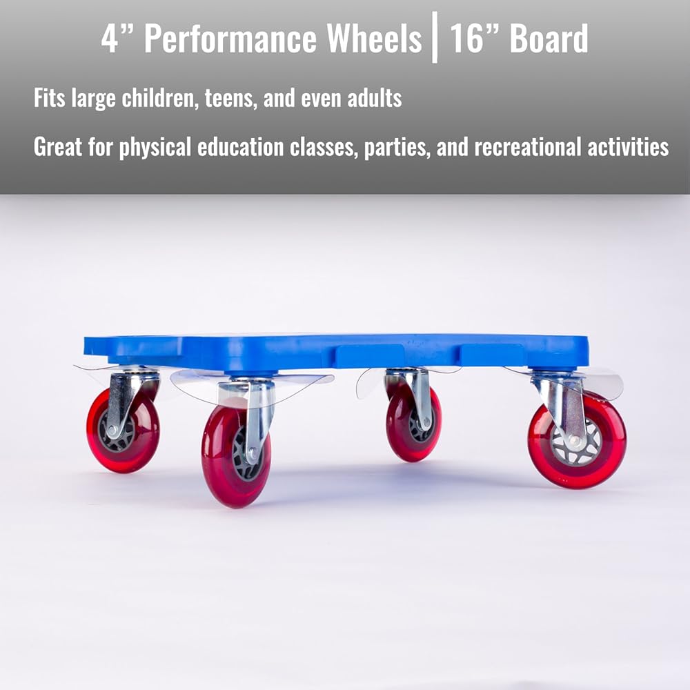 Cosom Scooter Board, 16 Inch Premium Sit & Scoot Board with 4 Inch Non-Marring Performance Wheels, Double Race Bearings, & Safety Handles, Physical Education Class Equipment, Blue