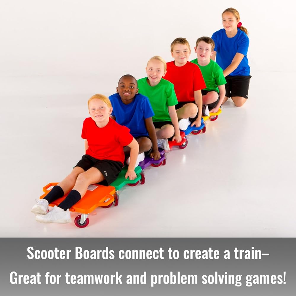 Cosom Scooter Board, 16 Inch Children's Sit & Scoot Board with 2 Inch Non-Marring Nylon Casters & Safety Guards for Physical Education Class, Sliding Boards with Safety Handles, Blue