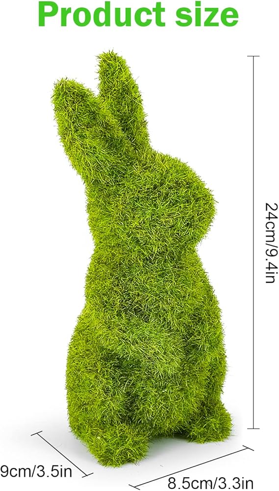 [Suitable size]: Moss rabbit sitting (small): 8*6*11cm/3.1*2.3*4.3in; standing (small): 6*7*14cm/2.3*2.7*5.5in; sitting (medium): 16*9.5*13cm/6.2*3.7*5.1in; standing (medium): 8.5*9*24cm/3.3*3.5*9.4 in, which is the ideal size for decorating desks and tables. It is also suitable for gardens, desks and backyards.