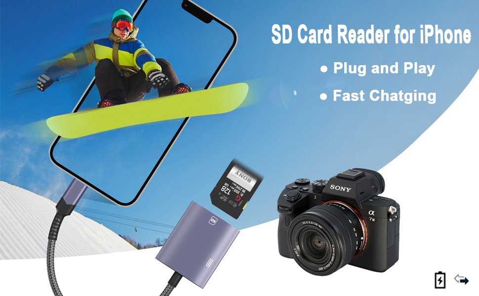 📼【FAST CHARGING AND HIGH SPEED TRANSMISSION】: This SD card reader allows you to charge iPhone/iPad while synchronizing data. It supports up to 2TB of card capacity. Ultra high-speed data transmission is 10 times faster than traditional USB 2.0 to ensure long-term stability. Don't worry about your phone's low battery
