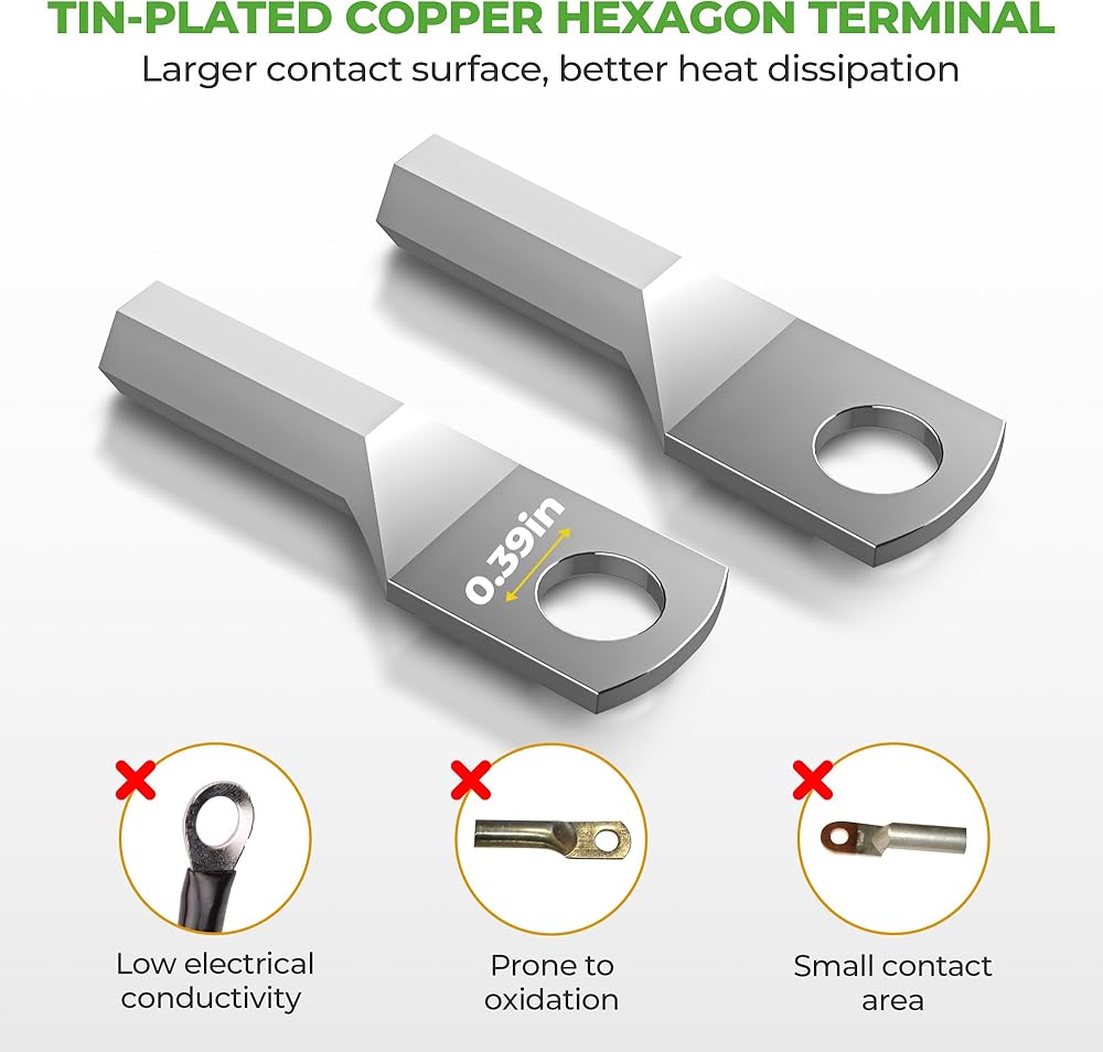 Tin-plated Copper Hexagon Terminal: The tin-plated copper can increase heat dissipation, more wear resistance, corrosion resistance, which improves the oxidation resistance of copper.