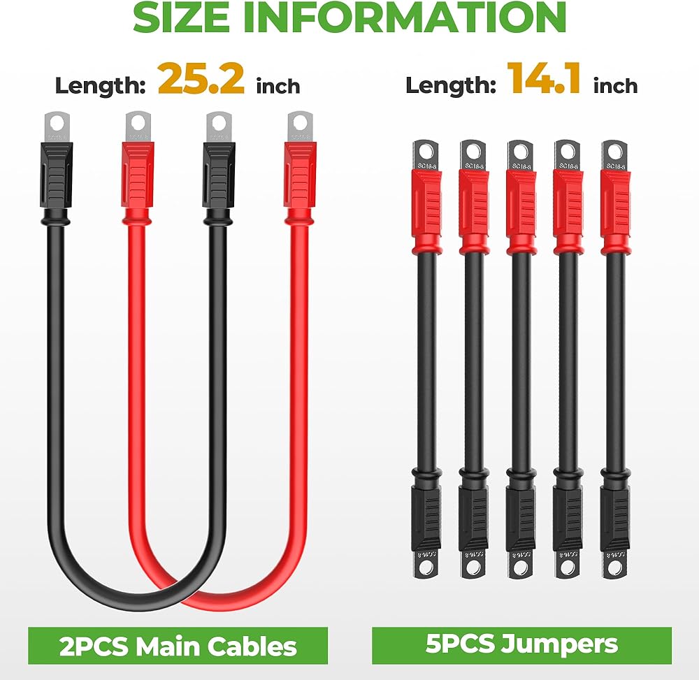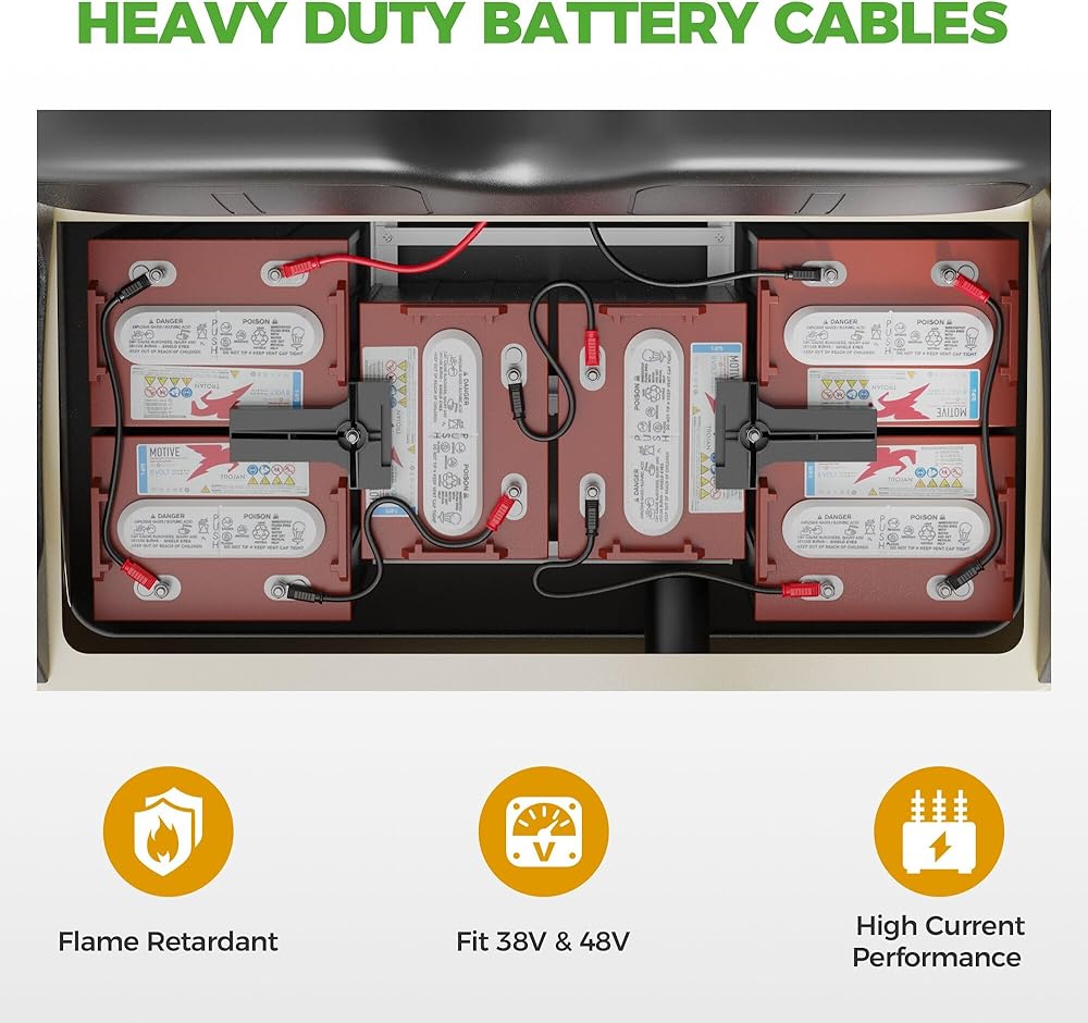 Fit for Golf Cart: The battery cables fits for 36 volt EZGO TXT 1994 & up. Each Set Comes : 5pcs-14 inch, 1pcs-25 inch black, 1pcs-25 inch red.