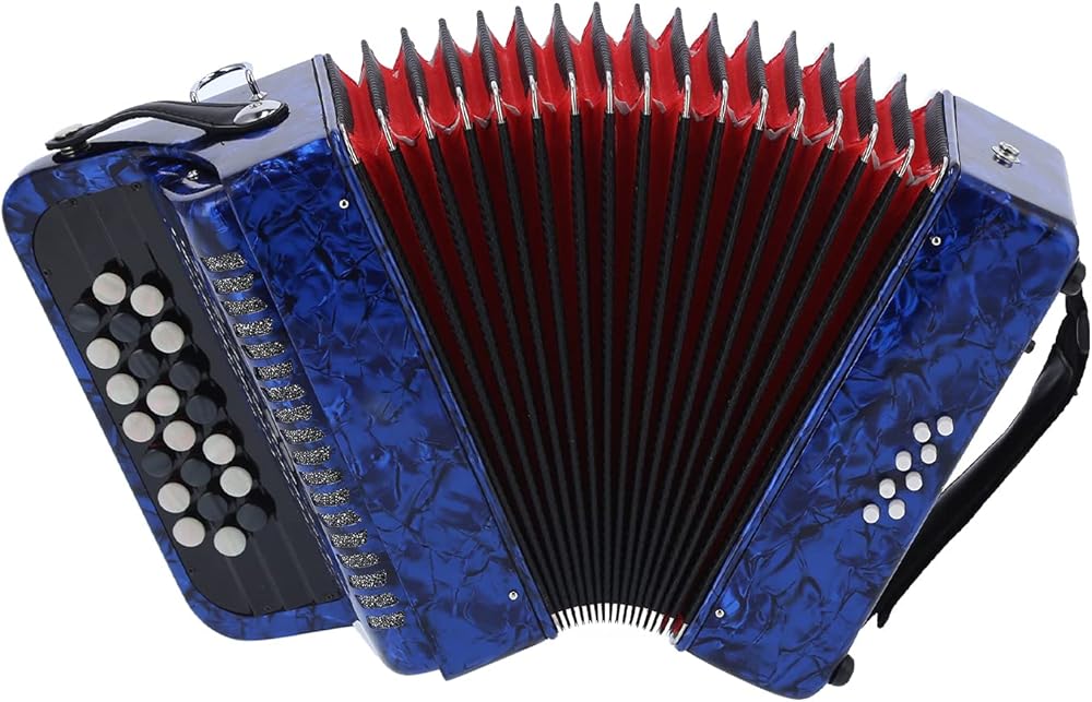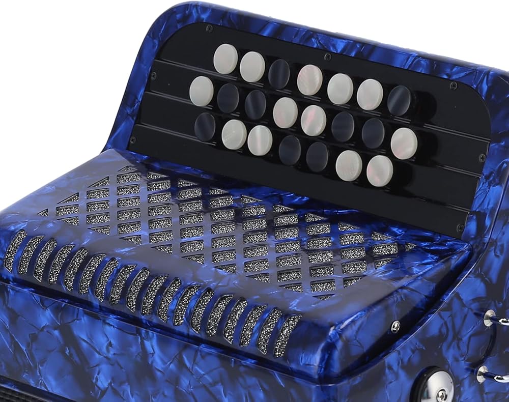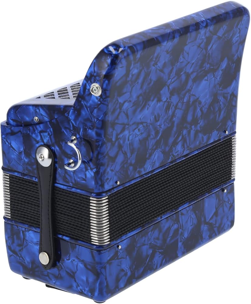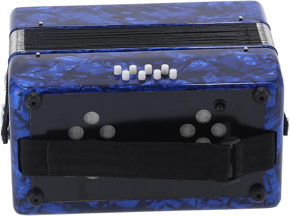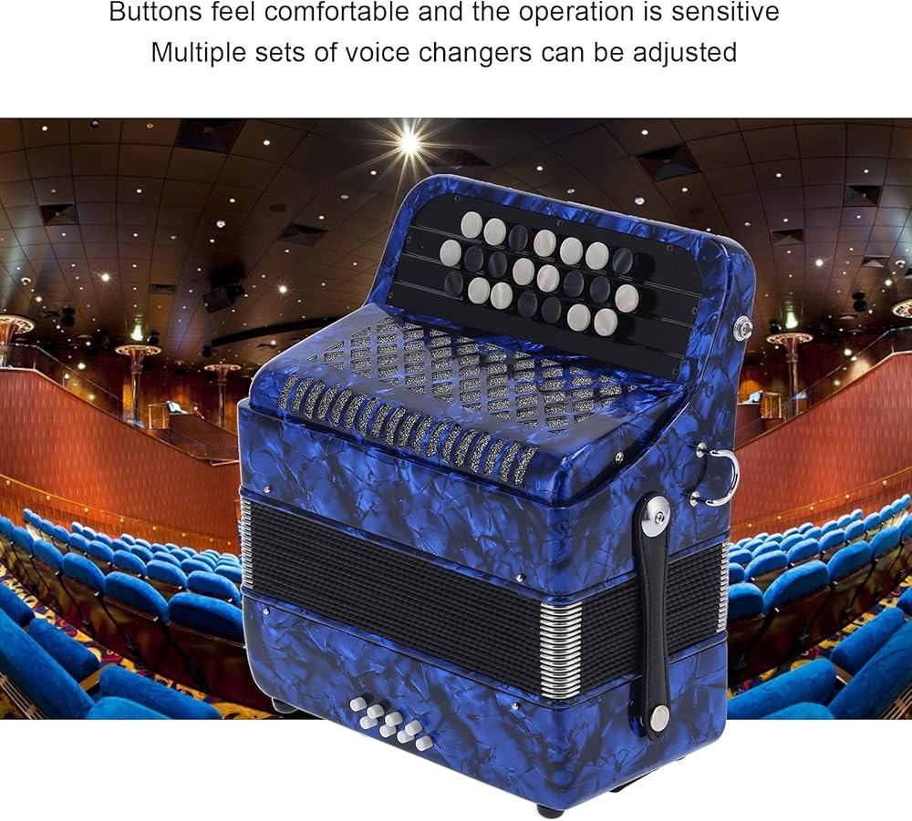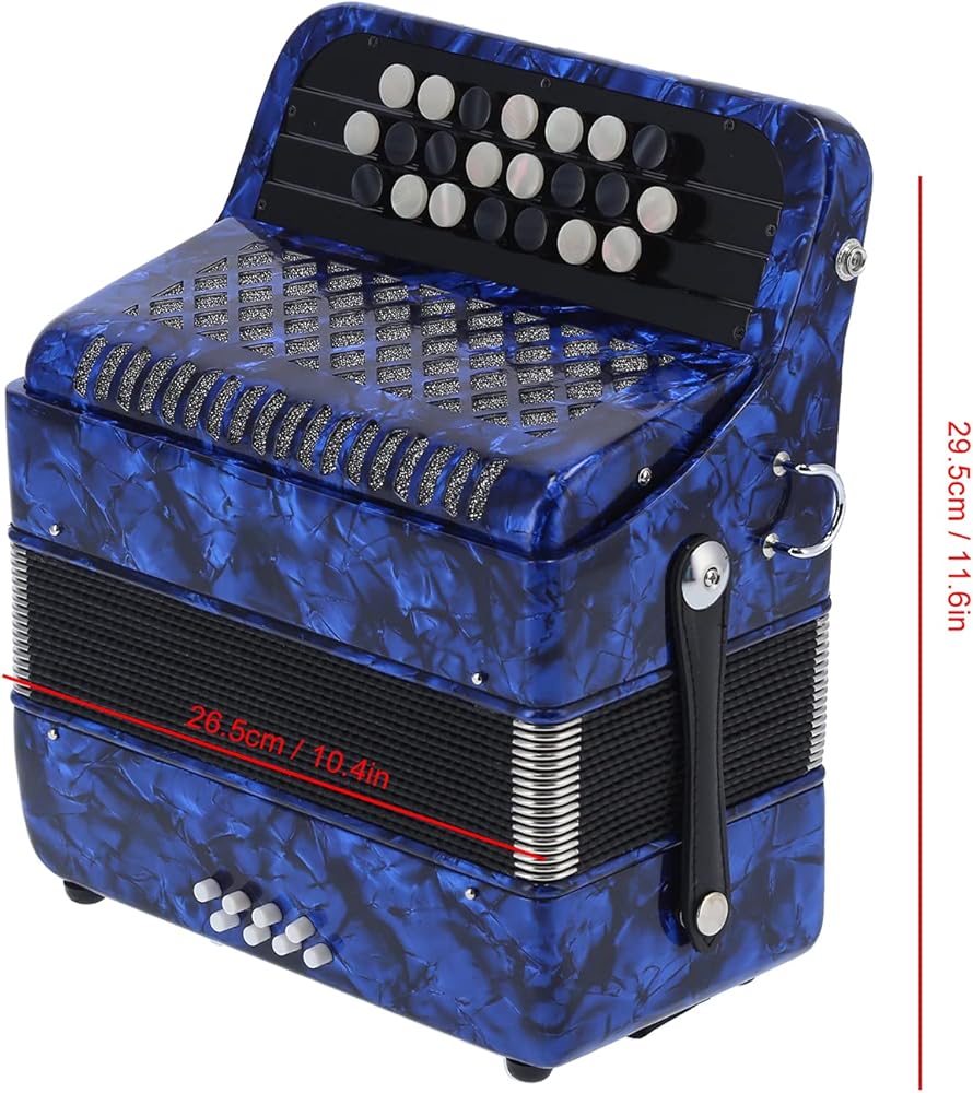 【GOOD SOUND QUALITY】The 22 key 8 bass professional accordion made of high quality ABS, wood, metal and other materials, keeps the sound integrity to the greatest extent and produces a pleasant and mellow sound that is soothing to the ear. bright color, beautiful appearance, exquisite workmanship, ergonomic design, flexible and easy to use.