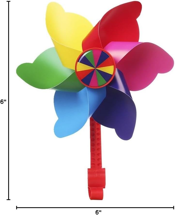Bike Handlebar Pinwheel for Kids, Mini-Factory Bike Accessory Decoration Wind Spinner for Kid's Bicycle (Rainbow Stripes)