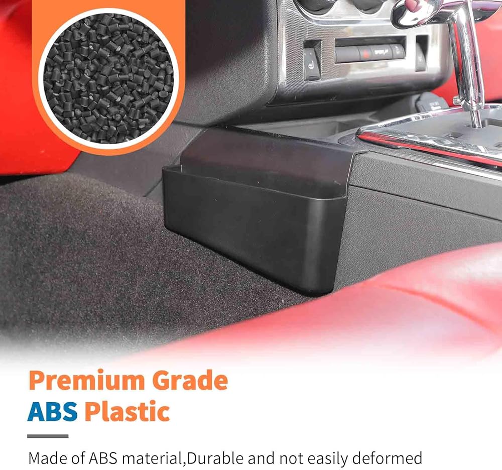 The center console gear shift storage tray is made of sturdy ABS plastic material, well-made, it has good stability and strength, ensuring its durability and practicality. This is an excellent storage accessory for your Challenger.