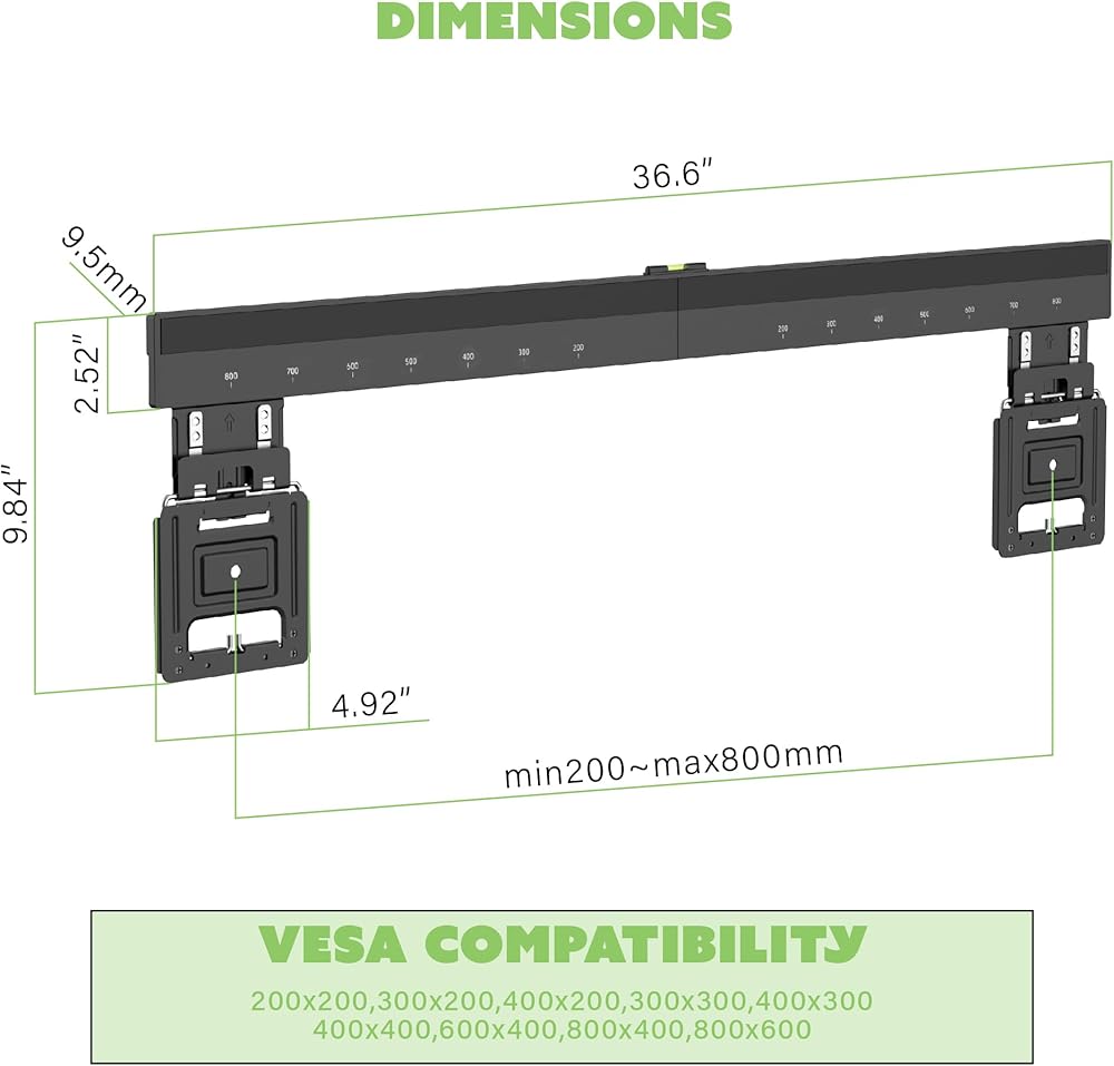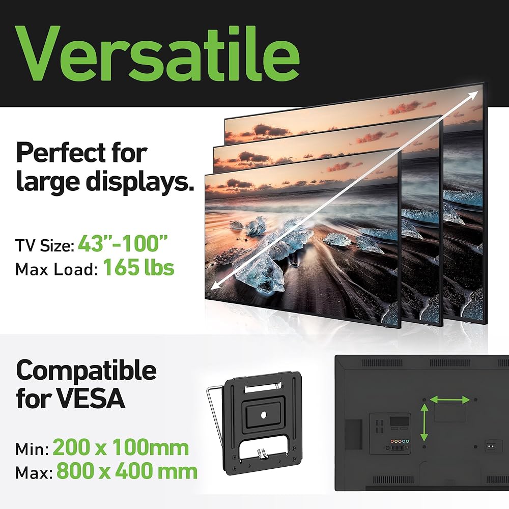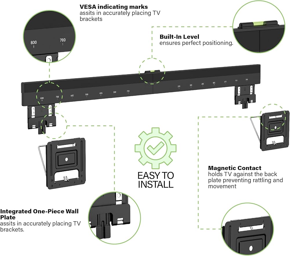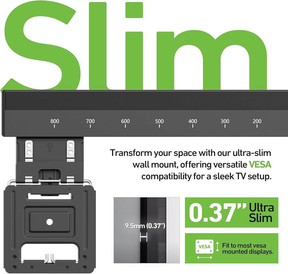 Ultra Slim Micro Gap Wall Mount for 43-100 inch TVs, Vesa 200x200-800x600, 165 lbs, Only.37 Profile, Kickstand, Magnetic Contacts, Tools & Bubble Level (2024 Model)