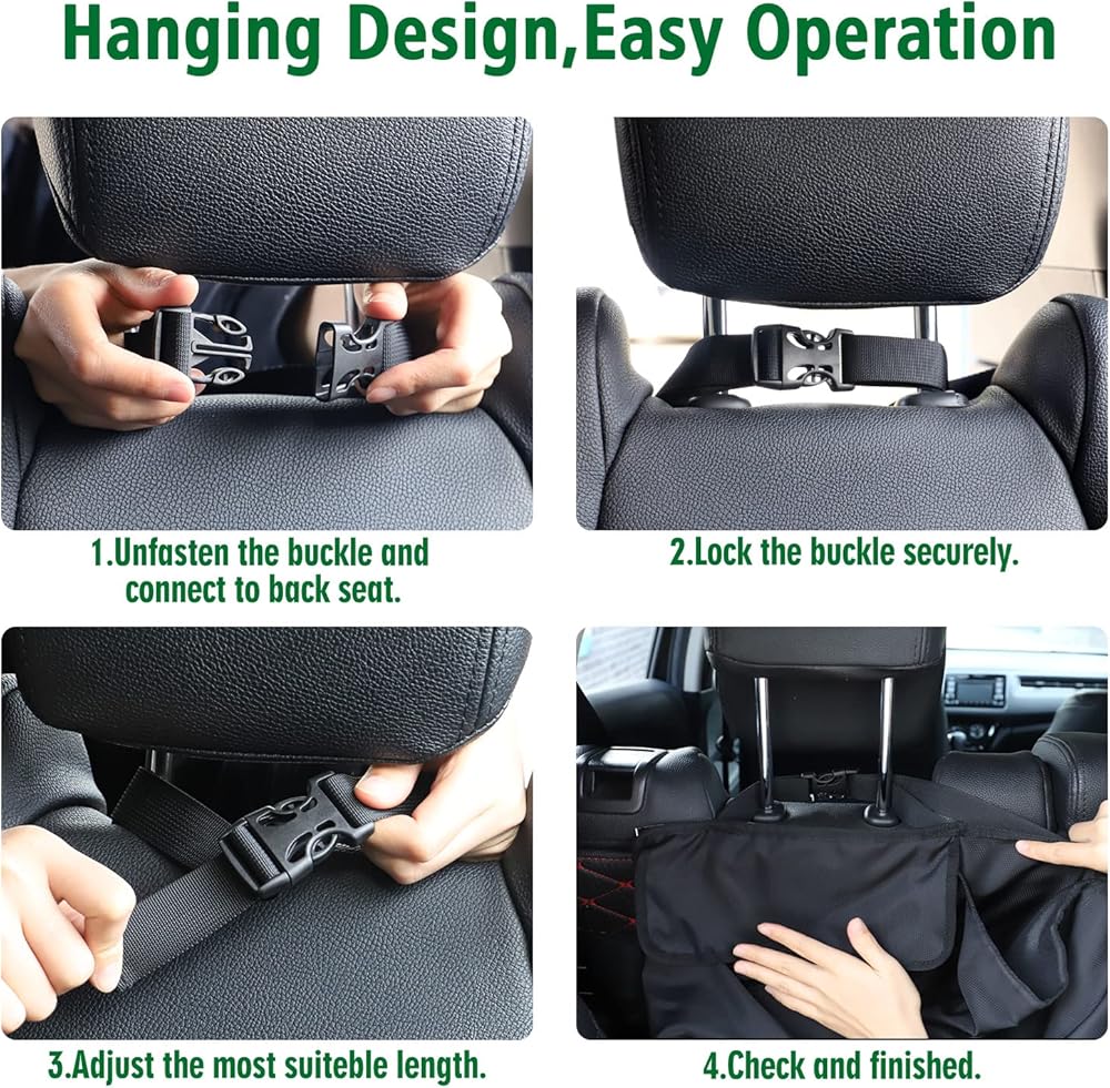 Easy to Install - Car hanging storage bag with 3 strong and adjustable straps, the removable trunk organizer fits all headrests,easily install & uninstall in seconds.