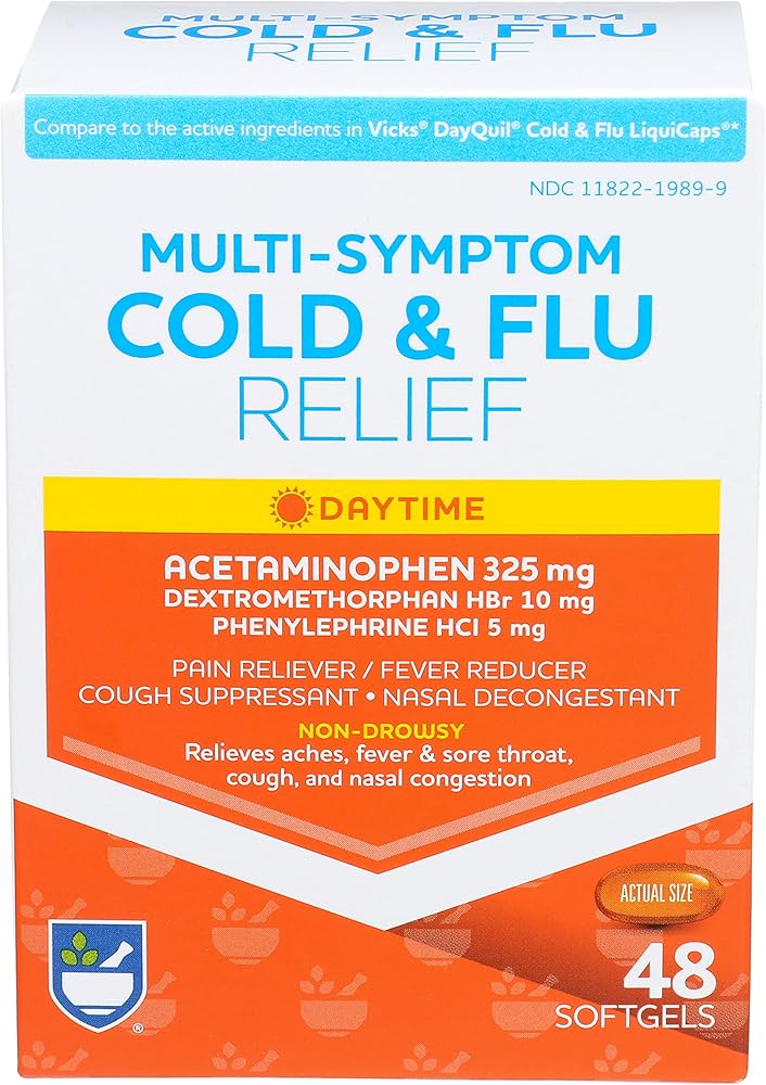 Rite Aid Multi-Symptom Cold and Flu Relief provides non-drowsy relief of aches, fever and sore throat, cough and nasal congestion.
