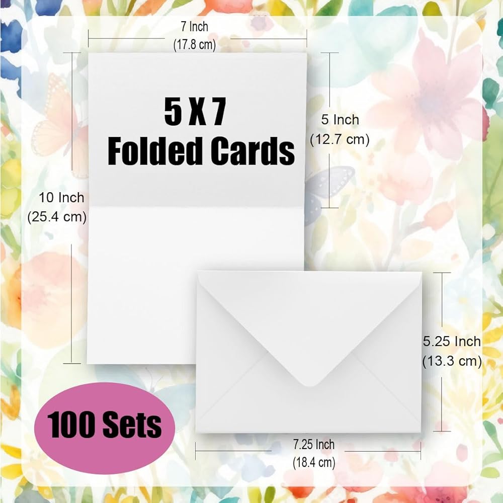 Ample Supply: With 100 packs of blank note cards and envelopes, you'll have an abundant stock for your crafting needs. You will be love how they are large enough to get a lot of writing in, and the matching envelopes are perfection!