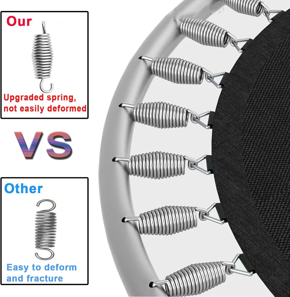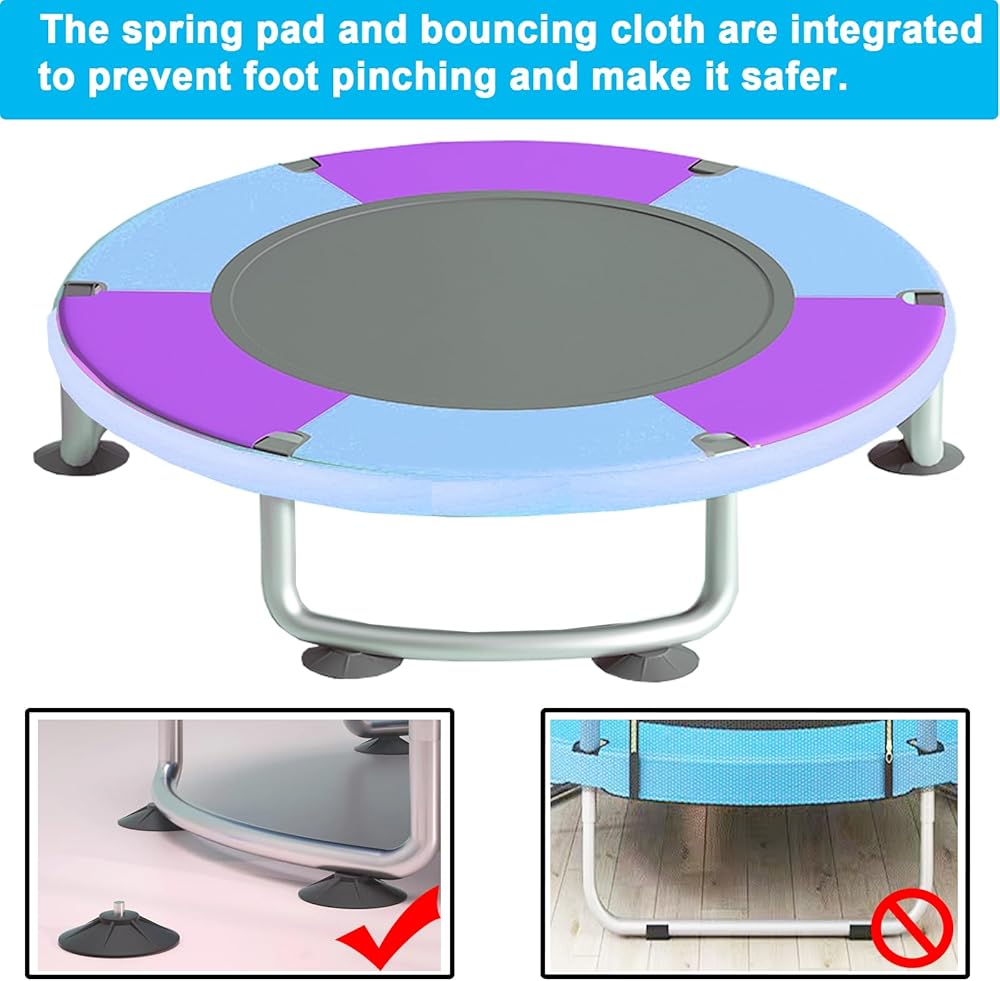 【Quiet, Stable, and Durable】There are two silent suction cups under each U-shaped leg, so you don't have to worry about children making noise when jumping, nor do you have to worry about the trampoline shaking or overturning during intense jumps, because the suction cups will firmly suck on the floor, improving stability and not damaging the floor.