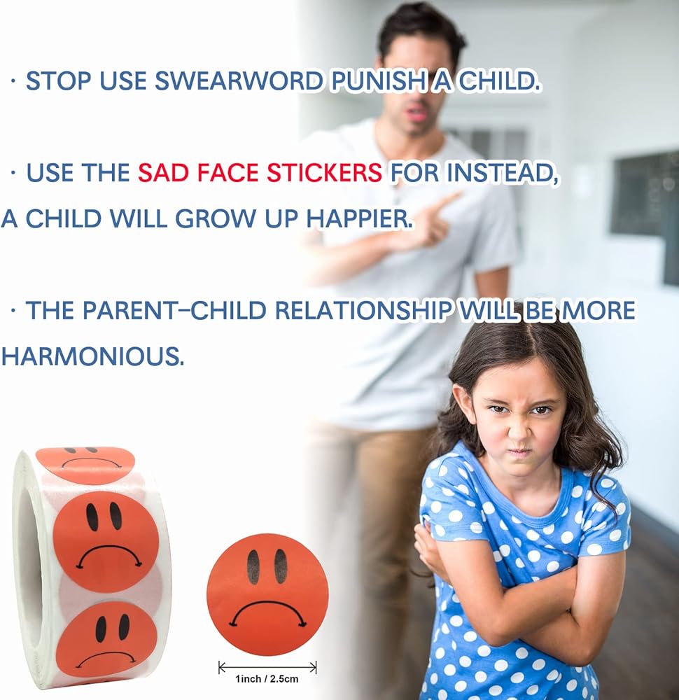 unhappy sad frown face stickers Stop use swearword punish a child. Use the sad face stickers for instead, a child will grow up happier. The parent-child relationship will be more harmonious.