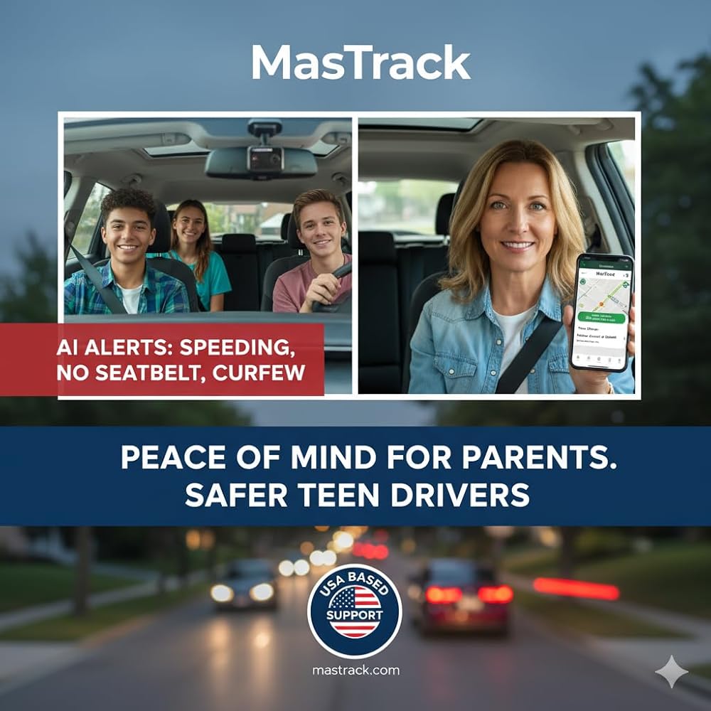 MasTrack 4G AI Dash Cam (4 Channel): Smarter Live Connectivity with Greater Visibility- User Friendly Dash Camera - Track Your Family Anywhere - GPS - Wireless Car Accessories