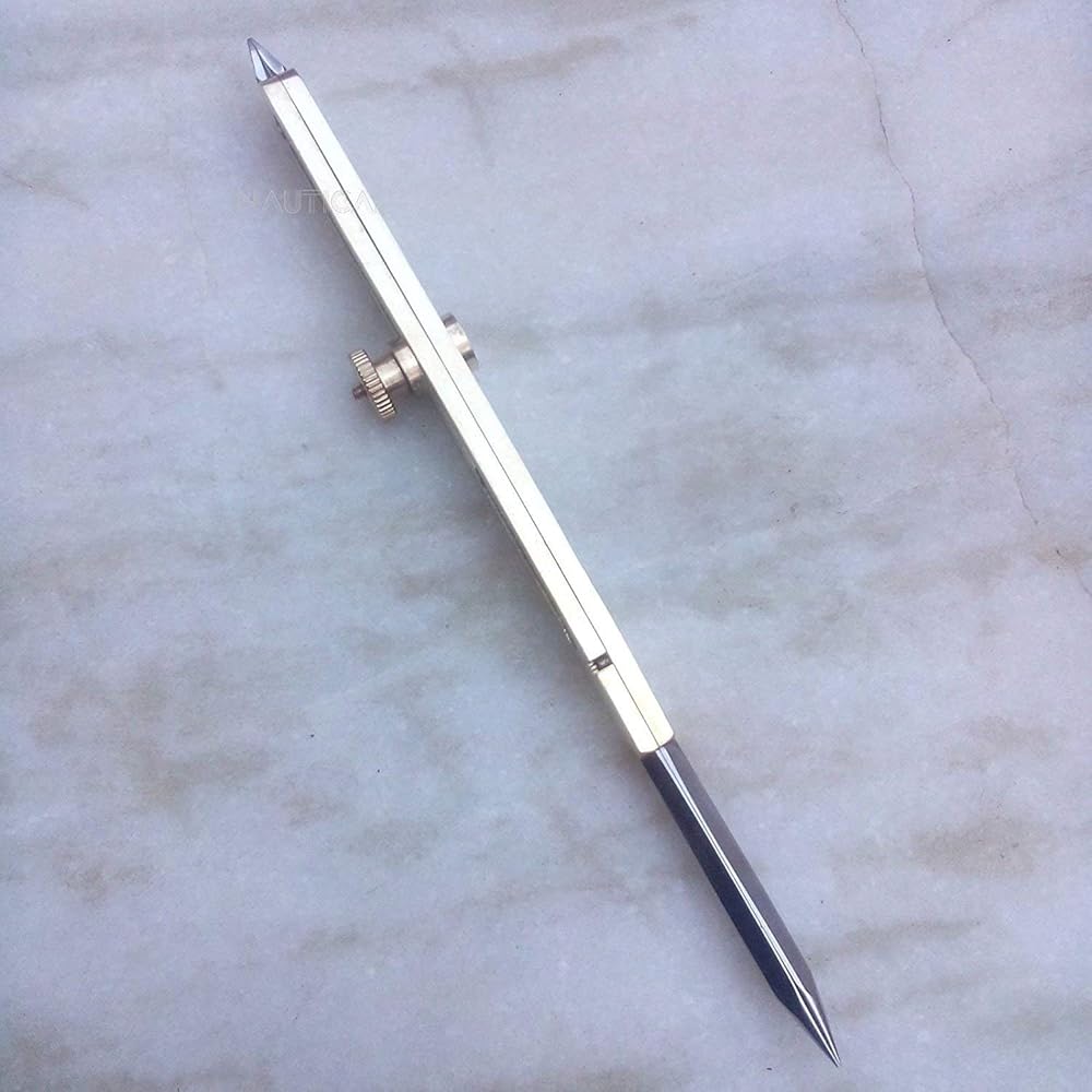 Brass 9 in. Proportional Divider Steel End For Sharp Point This detailed item measures approximately 9 inches Point To Point and 3/4 inch wide.